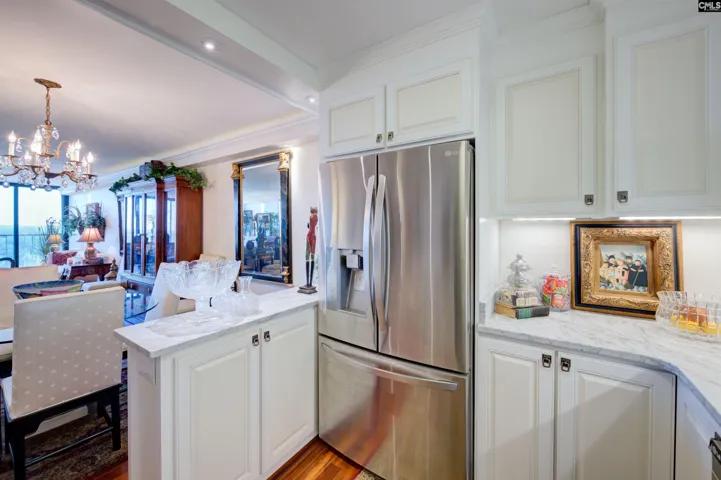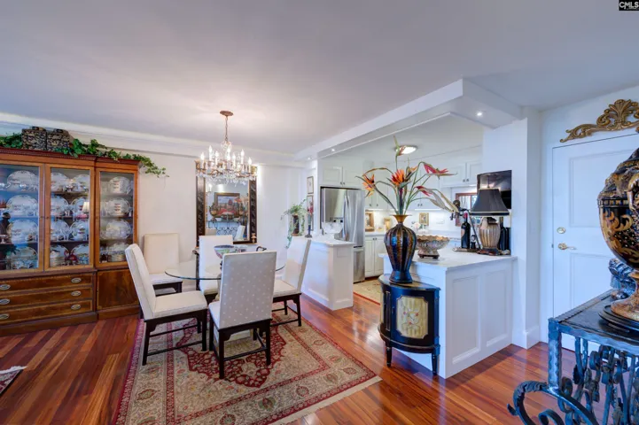 +"PublicRemarks": "Welcome to elevated elegance at 1825 St. Julian Place, Columbia, SC! This exquisiteCondo with sweeping city views, perched on the top 18th floor , seamlessly blendssophisticated New York charm with modern comforts. Key Features: Total renovation: This unit was totally renovated in 2014. Sophisticated Interiors: Step into luxury with rare Brazilian Koa wood floors,guaranteed with a 100-year warranty, and elegant Carrara marble countertopsthroughout. Exceptional Design: Floor-to-ceiling, hurricane-rated, sliding glass doors open to bring outside in and, inviting you to experience indoor-outdoor living at itsfinest. Extra capacity air conditioning and extra vents provide year-round comfort.Special lighting enhances the ambiance and highlights the condo's stunningfeatures. Comfort & Convenience: Benefit from extra HVAC vents and a higher ratedHVAC system designed to accommodate the extra space and ensure year-roundcomfort. Enhanced Security: Enjoy peace of mind with 24-hour on-site security andsecured attached parking garage for your convenience and safety. Disclaimer: CMLS has not reviewed and, therefore, does not endorse vendors who may appear in listings."