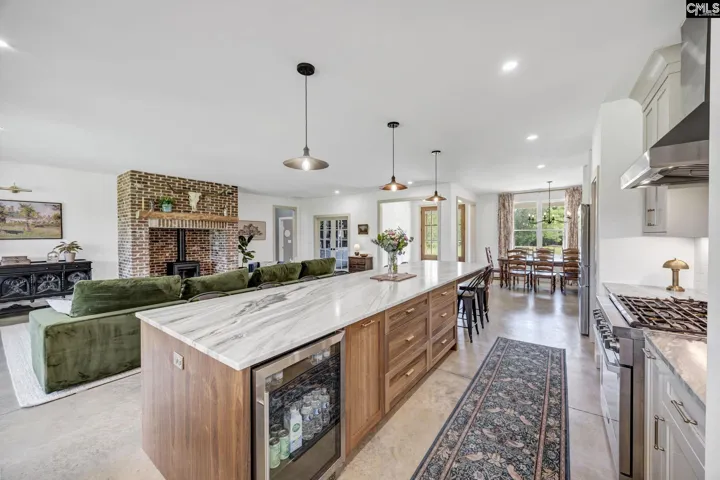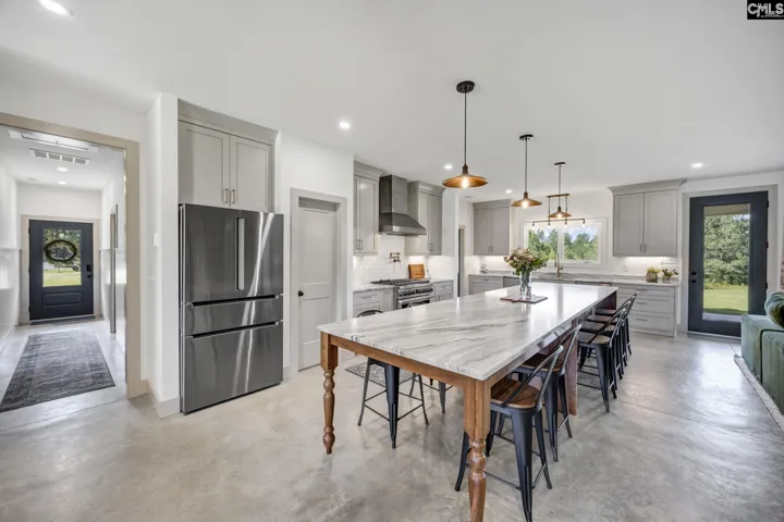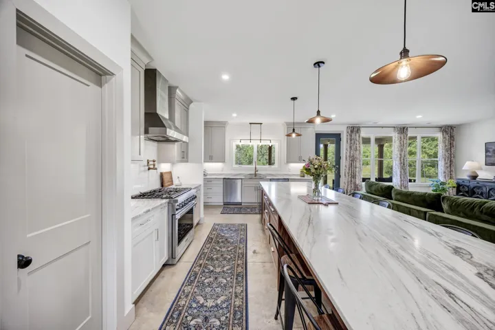 +"PublicRemarks": "If you’ve been craving privacy and luxury, this is it. Located just 30 minutes from Irmo and 45 minutes from Columbia, this custom-built home sits perfectly in the middle of 38.67 acres at the end of a private road, surrounded by peaceful views in every direction. Inside, you’ll find 4 bedrooms, 3 full bathrooms, plus a dedicated office space across 2,711 square feet. The split floor plan separates the owner’s suite from the other bedrooms and offers a tucked-away guest suite with its own bathroom, perfect for visitors or multigenerational living. The open-concept layout centers around a stunning 16-foot kitchen island with leathered portinari marble. The space flows into the living area, where a cozy wood-burning stove adds warmth and charm. High-end finishes are seen throughout, and wellness-forward features include a spray-foamed attic with dehumidifier and an ERV system to bring in fresh, filtered air. Already wired and prepped for a whole house generator. Enjoy country living on the expansive front and back porches. The back porch is the perfect spot to watch the sun set. There’s also a prime area beside the home for a future detached garage or workshop. This property is something truly special. Enter the property through a gate and follow the winding drive past the front pasture, around a cluster of trees, to the home which sits in the middle, on the high point of the property. A large level area, previously used as an RV pad with water and septic hookups is planned out for a large garden and outdoor bathroom/shower. A smaller pasture with a shelter is behind the home, perfect for dogs or small livestock. You’ll also find a budding kitchen garden, berries and the start of an orchard planted. Trails wind through the woods, following the property borders and leading to an abundant creek and several wet weather creeks. There is an abundance of wild muscadines and blackberries throughout the trails. Peaceful wildlife sightings include deer, wild turkeys, and rabbits. Located just 30 minutes from Irmo and 45 minutes from Columbia, and only a short drive to charming, historic downtown Newberry with shops, dining, and the beloved Newberry Opera House. Disclaimer:"
