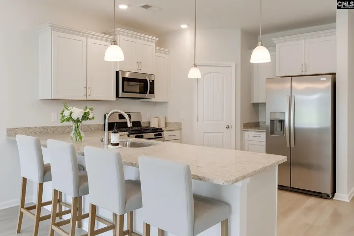 +"PublicRemarks": "Welcome to The Falls! Fall in love with this four-bedroom, two-and-one-half bath Townsend floorplan with the primary bedroom on the main floor! The open-concept living, dining, and kitchen areas are seamlessly connected, creating a bright and airy space ideal for gatherings and hosting guests. The kitchen features modern design upgrades to include a gas range, stainless steel appliances, and stunning white quartz tops perfect for meal prep or morning breakfast around the peninsula. The spacious living area offers a cozy fireplace to unwind and relax. On the main floor, the primary bedroom is a serene retreat designed for ultimate comfort. The luxurious ensuite features both a garden tub and a separate tile shower. Double vanities and a walk-in closet complete the space, offering both convenience and functionality. Upstairs, you'll find two additional bedrooms and a bonus room that can function as an additional bedroom, office, or entertainment room to suit your lifestyle. This home balances comfort, style, and functionality, making it an ideal choice for those seeking affordable living with a touch of luxury. Don't miss the opportunity to call this place home! Disclaimer: CMLS has not reviewed and, therefore, does not endorse vendors who may appear in listings."