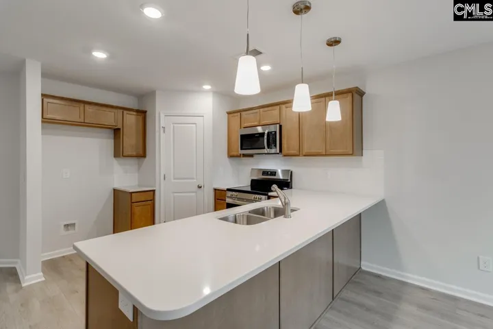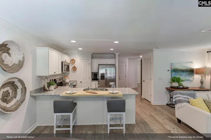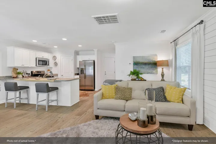 Enjoy resort-style living every day at Ellington, with incredible amenities like a cabana, pool with wading area, lazy river, and sidewalks on both sides of the street for strolling or staying active. Save up to $10K in closing costs with our partner lender or take advantage of a special 4.99 rate! The Dawson plan is a beautifully designed three-bedroom, two-and-a-half-bathroom home with an open-concept layout that maximizes space and style. Step into the foyer, where luxury vinyl plank flooring flows throughout the main level. The kitchen features upgraded Miami Vena quartz countertops, birch quill cabinetry, and a stainless-steel electric cooktop. Pendant lighting above the peninsula adds a designer touch, and the kitchen opens to a charming eat-in area and spacious great room—perfect for everyday living or entertaining. Step outside to the covered rear porch, ideal for enjoying your outdoor space year-round. Wood spindle railings add elegance as you head upstairs, where all bedrooms are located. The primary suite includes a boxed ceiling, large walk-in closet, dual sinks, and a tiled shower for a luxurious feel. The upstairs laundry room features cabinetry for added storage and convenience. Two additional bedrooms share a full bathroom, and a one-car garage completes this smart, stylish home. The Dawson plan offers modern comfort and charm—come make it yours at Ellington! Disclaimer: CMLS has not reviewed and, therefore, does not endorse vendors who may appear in listings.