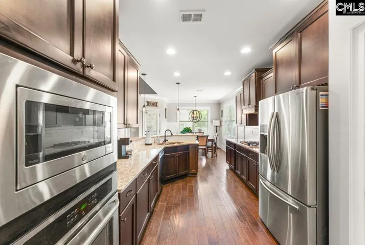 +"RoomKitchenFeatures": "Bar,Eat In,Floors-Hardwood,Pantry,Counter Tops-Granite,Cabinets-Stained,Recessed Lights"