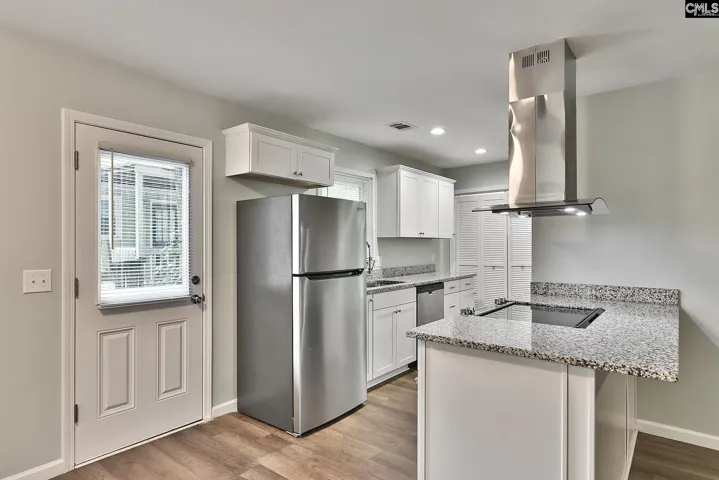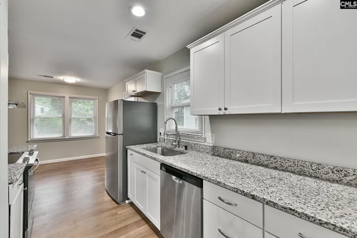 +"PublicRemarks": "Enjoy open-concept living in this stylish home featuring a spacious kitchen with granite countertops, stainless steel appliances, and a modern island with cooktop. Contemporary light fixtures enhance the modern feel throughout. The primary suite offers a walk-in closet and an updated bathroom with a tiled floor, vanity, and tub/shower combo. A second bathroom also features updated finishes. Outside, relax or entertain on the deck overlooking a fenced backyard with a workshop/shed. Located in the desirable Lexington/Richland 5 school district with easy access to Harbison amenities and Lake Murray. Disclaimer: CMLS has not reviewed and, therefore, does not endorse vendors who may appear in listings."