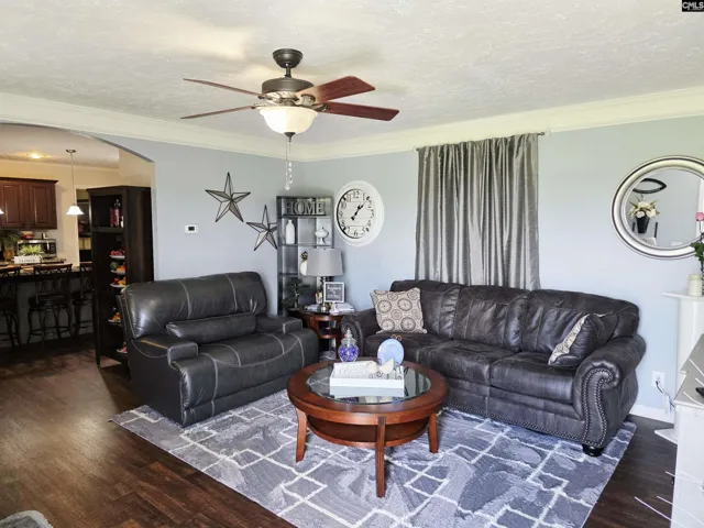 +"Living Room": "Fireplace,Molding,Ceiling Fan,Floors-Luxury Vinyl Plank"