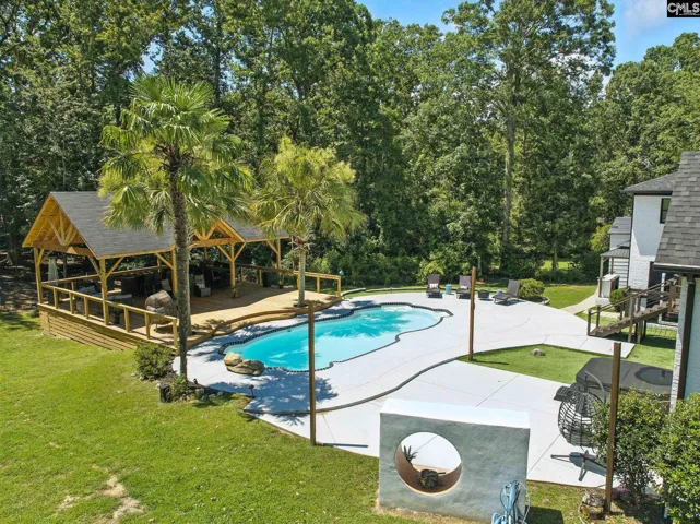 +"PublicRemarks": "Spectacular “One of a kind” property on Lake Murray. Unmatched outdoor living areas, to maximize the lake living lifestyle! Private dock features the shelter of a cove, with the views of big water. The charm, character & unique interior is both inviting and warm. The great room and kitchen feature a dramatic vaulted metal ceiling & high end modern gas fireplace give off a cool urban vibe. This main living area opens to the screen porch which offers additional areas to enjoy the lake views and enjoy lakefront dining. Heart Pine flooring is found throughout most of the home, as well as the floating staircase to the second floor. The living room has incredible light, a tongue and groove vaulted ceiling, tile floor and opens onto the lakefront deck. Enjoy big lake views from every room. Gourmet island kitchen with leathered marble counters, stainless steel appliances, Induction cooktop, wine chiller, prep sink, as well as oversized workstation sink. Primary suite features a spa-like bathroom, with custom tile multi head shower, double vanity, separate water closet and walk in closet with washer/dryer conveniently located inside. Just off the primary suite is a hot tub to luxuriate in. The oversized second suite is on the second level, with lake views, vaulted ceiling, great natural light and a private bath with a soaking tub. There is a plan available to split this space into 2 bdrms. Designer neutral color palette throughout make this home easy to move into and enjoy from day one! You’ll love the number of areas to enjoy the outdoors, from the covered front porch, screened back porch, spacious lakefront decking, covered outdoor cooking area, gunite salt water swimming pool and patio, to the lakeside firepit area! A double bay garage, 400 sqft, with it’s own mini split unit, can make this space useable for much more than storing cars and tools. The property has lake fed irrigation, landscape lighting, mature landscaping and decorative iron fencing. This is a special lake property, like no others!Agent owned. Disclaimer: CMLS has not reviewed and, therefore, does not endorse vendors who may appear in listings."