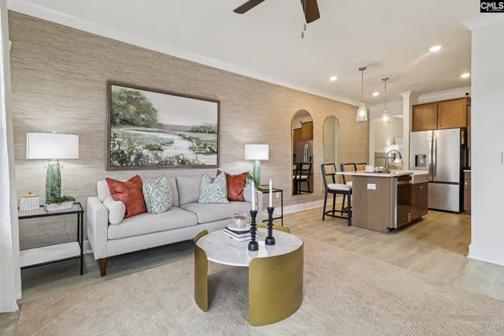 The Southern Breeze II in Walker’s Trail: End Unit TownhomeThis beautifully finished end-unit townhome offers a rare blend of comfort, design, and day-to-day simplicity in one of Lexington’s most accessible and peaceful communities. Set within Walker’s Trail, the home is part of a neighborhood designed to balance quiet surroundings with quick access to shopping, dining, and major routes.Inside, warm oak hardwood stairs lead to an open main level with luxury vinyl plank flooring and upgraded carpeting that flows throughout the living spaces. The kitchen is a showpiece—featuring granite countertops, a white farmhouse sink, herringbone tile backsplash, modern cabinetry, and stainless steel appliances. It’s a space that works as beautifully as it looks.The Executive Trim Package adds crown molding in the entry, kitchen, and great room, while the owner’s suite includes granite counters, comfort-height toilets, and a brushed nickel hinged shower door for a polished, comfortable finish.Additional highlights include smart home automation, a built-in music port with ceiling speakers, full window treatments, upgraded lighting, a smart electronic deadbolt, and a covered rear porch for seamless indoor-outdoor living. Photos shown are of the model home, which is currently staged as a design center and office space. Images may not reflect standard residential layout or furnishings. Actual features and layout may vary and are subject to change without notice. ***MOVE IN PACKAGE OFFERED: Blinds, Basic Refrigerator, Washer and dryer****HOA Includes front and backyard maintenance, termite bond, power washing, roof reserves, entrance and common area maintenance Disclaimer: CMLS has not reviewed and, therefore, does not endorse vendors who may appear in listings.