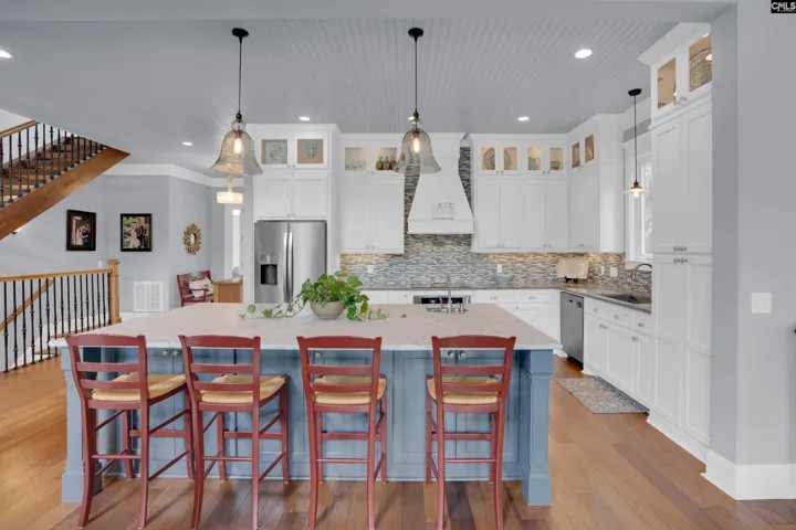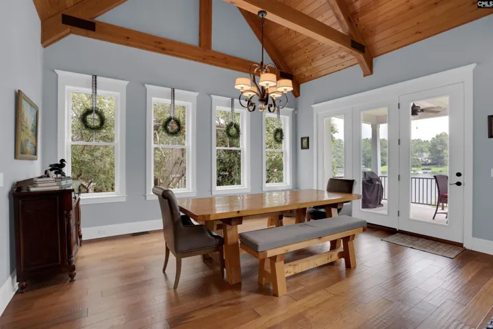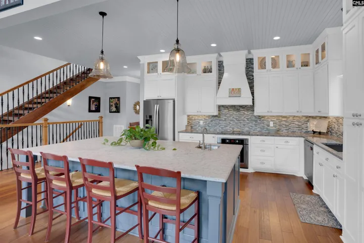 +"PublicRemarks": "Welcome to 479 Greenetree Lane—a truly exceptional Lake Murray retreat in the heart of Lexington, South Carolina. This custom-built residence boasts over 100 feet of pristine water frontage with a rare 360 line extending deep into the lake, offering breathtaking views from nearly every room. The architecture blends rustic charm with refined elegance, featuring soaring 24-foot exposed beam ceilings, rich hand-scraped hardwoods, wrought iron balusters, and a dramatic stacked stone fireplace as the centerpiece of the main living area. The gourmet kitchen is designed for the passionate cook, showcasing honed Carrera marble, granite countertops, dual prep sinks, high-end appliances, and custom backlit cabinetry that adds warmth and sophistication. Perfect for those who love indoor-outdoor living, the home offers expansive upper and lower covered porches with coffered ceilings, all overlooking the open waters of Lake Murray. The screened porch off the master suite provides a serene spot for morning coffee, while the upper-level porches set the stage for unforgettable entertaining. Upstairs, a spacious loft with built-in bookshelves creates an ideal home office or flex space. The terrace level opens to a flat backyard complete with a firepit, swing, and private dock with bridge and floating platform—perfect for lake days and sunset views. A full lower-level family room with a second kitchen makes this space ideal for guests, in-laws, or teens. Each secondary bedroom offers its own en suite bath and private porch access with stunning lake views. A large workshop provides ample storage for lake toys and could easily be converted into a fourth bedroom without compromising functionality. Just minutes from downtown Lexington’s shopping and dining, this home enjoys the privacy of a generous lot with no HOA, while bordering the prestigious Harbour Place community. 479 Greenetree Lane isn’t just a home—it’s a lifestyle, a sanctuary, and the ultimate Lake Murray dream property. Disclaimer: CMLS has not reviewed and, therefore, does not endorse vendors who may appear in listings."