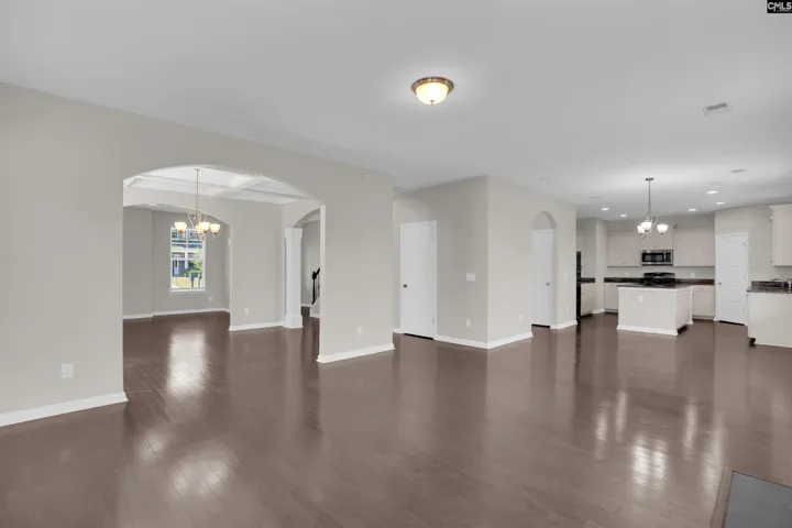 This elegant home features a grand foyer with archways leading to formal living and dining rooms, enhanced by coffered ceilings and crown molding. The open great room that flows into a gourmet kitchen with lots of cabinets, granite countertops, a large island, and stainless steel appliances. Hardwood floors span the first level, with oak stairs and metal balusters. The master suite offers a boxed ceiling, dual vanities, separate tub and shower, and his-and-her closets. Upstairs includes four spacious bedrooms and a convenient laundry room. Exterior upgrades include stone accents, decorative columns, and front yard irrigation. Disclaimer: CMLS has not reviewed and, therefore, does not endorse vendors who may appear in listings.