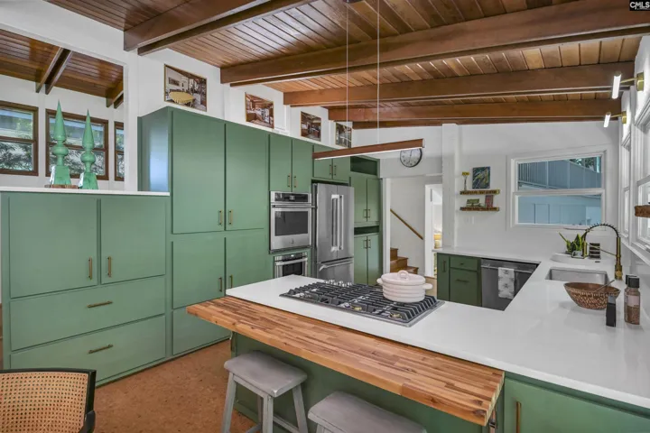 This quintessential midcentury modern home has been reimagined with luxury upgrades, blending timeless character with modern convenience. Nestled in the highly sought-after Lake Katherine neighborhood—known for its quiet, no cut-through streets, excellent in-town schools, and unbeatable proximity to downtown Columbia—this home offers both sophistication and a retreat-like sense of privacy.The renovated kitchen is a standout, featuring JennAir appliances, quartz countertops, custom cabinetry, and serene views of the backyard and creek. Upstairs, three bedrooms include one with a private en suite, alongside a beautifully updated hall bath. Each bedroom enjoys individual access to the expansive covered porch, ideal for morning coffee or evening relaxation. Upstairs renovations also include the relocation of the laundry room for everyday ease. The lower level offers an additional bedroom, full bath, and a spacious den with walkout access to the back patio and yard—perfect for entertaining or simply enjoying the outdoors. What makes this home truly special is its quality craftsmanship and private, retreat-like feel. This is more than a renovation; it’s a transformation designed to be lived in and loved. Reach out to the listing agent for more information or to schedule your private showing! Disclaimer: CMLS has not reviewed and, therefore, does not endorse vendors who may appear in listings.