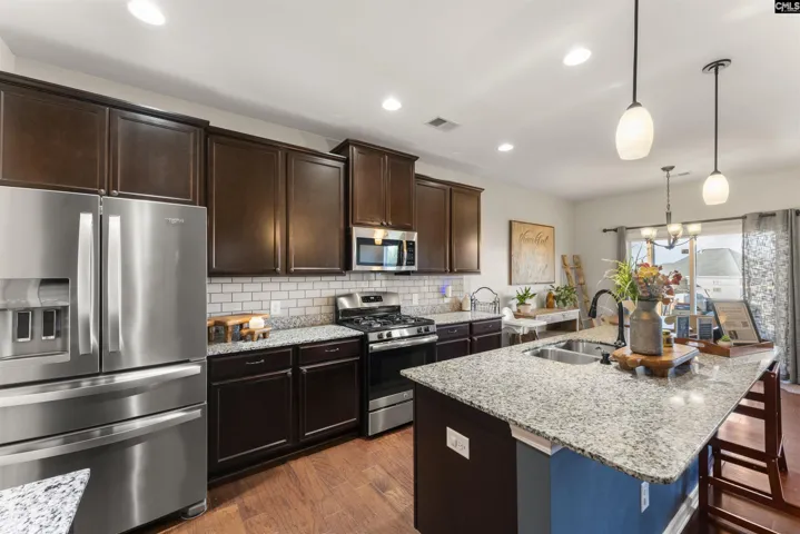 +"RoomKitchenFeatures": "Eat In,Island,Nook,Pantry,Counter Tops-Granite,Cabinets-Stained,Backsplash-Tiled,Recessed Lights,Floors-EngineeredHardwood"