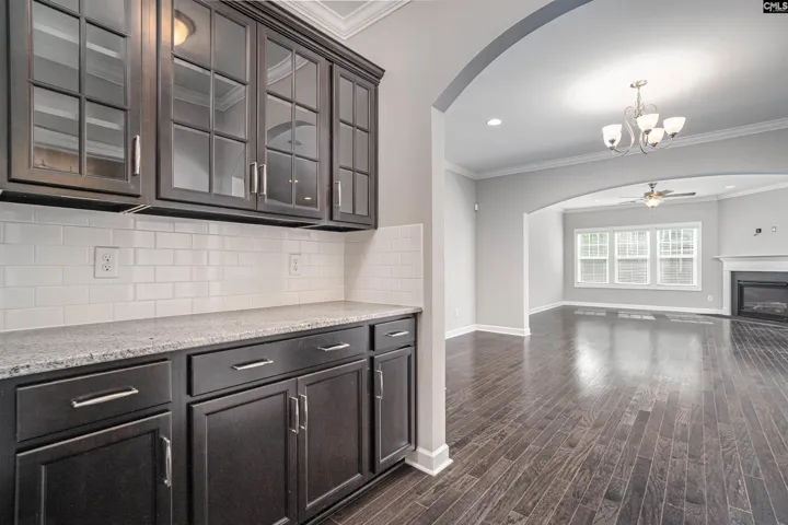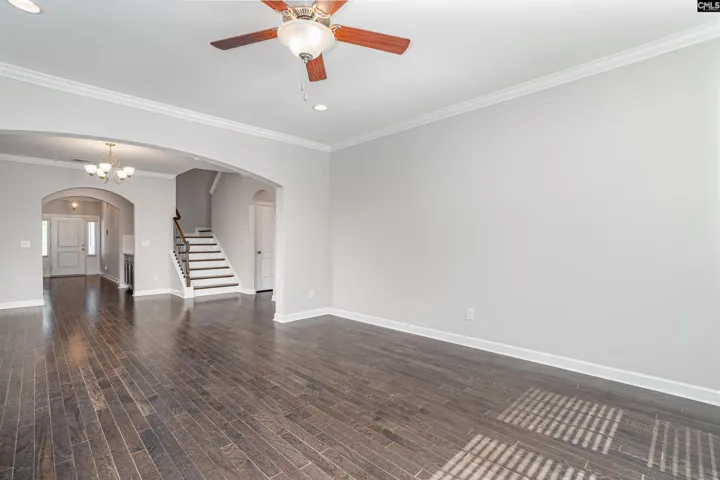+"Living Room": "Fireplace,Floors-Hardwood,Molding,Ceiling Fan"