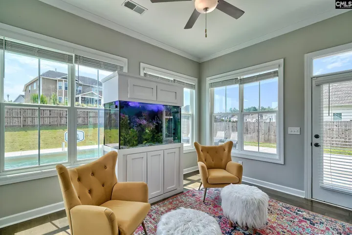 +"PublicRemarks": "Located in Lexington's Sterling Bridge neighborhood, Welcome to 616 Sterling Brook Drive. Built in 2022, this home has the ideal layout for entertaining both inside and out, including a newly installed heated saltwater pool in the backyard. Upon entering, you will notice the high ceilings, crown molding and engineered hardwoods throughout the main level. The office, currently being used as a formal sitting area is to the left and leads into the formal dining area with box ceiling details. The kitchen is spacious with white cabinetry, quartz countertops, stainless steel appliances and an eat-in area. There is a dry bar which makes for the perfect coffee station. The kitchen island with extra seating overlooks the family room and sunroom, providing ideal entertaining space. Tucked away on the main level, you will find a bedroom with access to a full hall bath, drop zone off the garage and a flex office/ storage space. Upstairs, the primary suite features a fireplace, sitting room and private bath with a tiled shower, soaker tub, dual vanities with tons of storage and a huge walk-in closet. Bedrooms 3 & 4 share a jack and jill style bath. Bedroom 5 shares the full hall bath. Also on the second floor is the bonus room/ playroom & laundry room. Outside, you will find the pool with a lounging ledge, full fenced in the yard with landscape lighting and patio space perfect for outdoor furniture. Zoned for top rated Lexington One Schools and a quick commute to downtown Lexington for shopping and restaurants. Disclaimer: CMLS has not reviewed and, therefore, does not endorse vendors who may appear in listings."