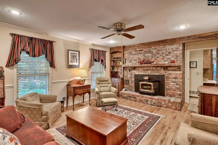 +"PublicRemarks": "Welcome to your dream home! This beautiful custom built all brick ranch home offers 4 bedrooms, 3.5 baths, and sits on a plush, private 6.5 acre lot conveniently located to Lake Murray and just 1.3 miles from the Lake Murray Dam. It boasts a nice spacious kitchen with beautiful wood cabinets, laundry room/mudroom, and gorgeous hardwoods throughout. The house is very open and has plenty of room to entertain family and friends. There’s a formal living room with wood-burning stove that opens up into a living room with built-ins. French doors open to a large sunroom with stunning tile floors. Don’t forget about the master suite. It offers a double vanity and a walk-in closet that is second to none! This is a must see. Outside the home has an inviting front porch, two car carport with a very nice workshop attached. There is also a detached carport with 300+ square feet of storage space downstairs. Upstairs is an amazing man cave that was built using wood from trees grown on the property. It features a half bath. All this and so much more. Schedule a showing today! Disclaimer: CMLS has not reviewed and, therefore, does not endorse vendors who may appear in listings."