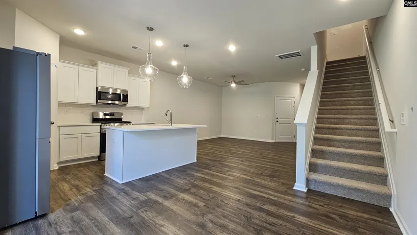 +"PublicRemarks": "New Ashford Floorplan - Tons of standard features !! Enjoy white shaker cabinets, white quartz countertops, undermount sink, pull out faucet, disposal, dishwasher, built in microwave & stainless steel side by side fridge in kitchen. Recessed can lighting in kitchen area. Ceiling fans in great room and master bedroom. Mohawk woodgrain Mahagony color hard surface flooring on first floor. Tile flooring in the bathroom & laundry room. Carpet in all bedroom areas. Quartz countertops in all full baths too. Home enjoys gas cooking & heating along with tankless water heater. Garage has fully painted walls along with opener and two remotes. Coach light above garage door. Home has 2" faux blinds on all windows. Back patio with covered overhang. Vinyl partition fences off back patio. Disclaimer: CMLS has not reviewed and, therefore, does not endorse vendors who may appear in listings."