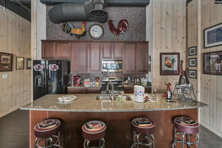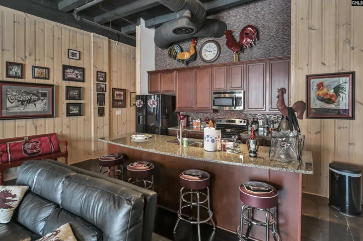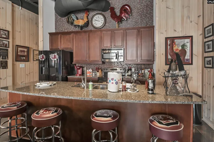+"PublicRemarks": "PUT ON YOUR GAMECOCK GEAR AND BRING YOUR TAILGATE FOOD TO SEE THIS CONDO ASAP! LOCATION IS SUPERB! STANDARD 2 BEDROOM, 2 BATH CONDO WITH FURNISHINGS TO CONVEY. 2 GATED PARKING SPACES SIDE BY SIDE. INSIDE YOU WILL FIND A COMFORTABLY FURNISHED CONDO WITH A QUEEN BED IN PRIMARY, PRIVATE BATH WITH LUXURY CULTURED MARBLE SHOWER, AND 2 DOUBLE BUNKBEDS IN BEDROOM 2. STACKABLE WASHER/DRYER IN CLOSET PLUS A NICE HALL LINEN CLOSET. IN THE FRONT OF THE CONDO THERE IS A SPACIOUS GATHERING AREA WITH KITCHEN BOASTING WITH STAINLESS AND BLACK APPLIANCES. DOUBLE STAINLESS SINK, GRANITE BAR, WOOD FLOORING, SHIPLAP WALLS, DOUBLE SLIDING GLASS DOORS WITH EXPANDED GLASS THAT BRING WONDERFUL LIGHT INSIDE. CUSTOM DRAPES, COVERED FRONT PATIO, PLUS SPIRAL STAIRS TO TAKE YOU UPSTAIRS TO YOUR OWN PRIVATE OBSERVATION DECK TO ENJOY GAMEDAY OR ANYDAY. DON'T DELAY. SEE TODAY! Disclaimer: CMLS has not reviewed and, therefore, does not endorse vendors who may appear in listings."