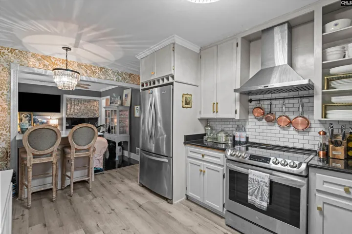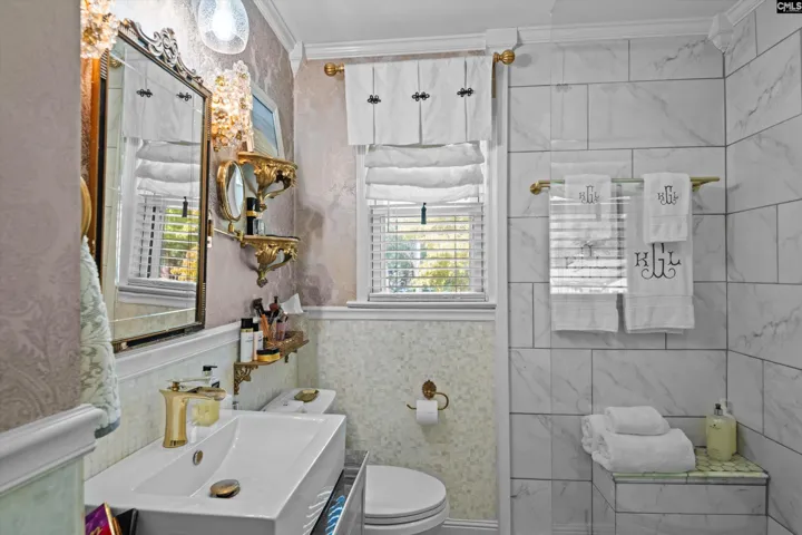 +"PublicRemarks": "Welcome to this charming home nestled on a spacious lot in desirable Forest Acres. This exceptional, well-maintained home blends classic character with elegant updates and extras too numerous to mention. The neutral color palette and fresh interior paint provide a clean, modern aesthetic. Featuring a beautifully renovated kitchen w/stainless appliances, granite countertops, subway backsplash & plenty of cabinet space, along with a Quartz topped island w/extra storage that opens to a cozy Home Office/TV room which could easily be re converted to a third bedroom. The bathroom is simply stunning and features a custom designed curbless shower with marble and mother of pearl accents, and glamorous Anna French wall coverings. Enjoy hardwoods and crown moldings throughout, and 2 well appointed and functional bedrooms that include generous closet space and ceiling fans along w/a lead crystal chandelier in the primary. Outside enjoy a NEW architectural shingled roof, a beautiful NEW 7 ft. high privacy fence, and a lovely deck for entertaining. Mature magnolia tree in the backyard and beautiful dogwoods in the front. Conveniently located minutes from USC, Five Points, downtown Columbia & Fort Jackson. Don't miss this GEM, as it's a must see!!! Disclaimer: CMLS has not reviewed and, therefore, does not endorse vendors who may appear in listings."