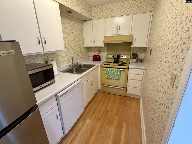+"PublicRemarks": "Lovely move in ready modern in-town condo. Top floor with fantastic views of uptown Columbia skyline and capital. Open floor plan with balcony, complete with electric screens. Lots of natural light looking toward sunset, wooden floors through out. White painted cabinets in kitchen. Neutral tiles in bathroom. All super clean. Parking space assigned, covered, secured w no steps.Truly move in ready and easy living. Friendly, safe and centrally located community. HOA fee includes many amenities, including 24-hour 7 day always onsite courtesy officer. Disclaimer: CMLS has not reviewed and, therefore, does not endorse vendors who may appear in listings."