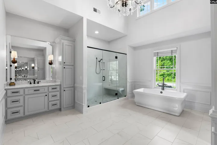 Once a 9-hole golf course, now a pristine, private estate, nestled on +/-60 acres of rolling land. Welcome home to Green Hill Acres. Just beyond the gated entrance is everything you could dream of from the main house, infinity edge salt water pool, guest house, heated and cooled shop, multiple outbuildings, several ponds and even a Golf Simulator/Home Theatre! Custom built by Chase Builders, the single-story main residence showcases superior craftsmanship with 4 bedrooms, 16’ beamed ceilings, reclaimed heart-pine floors, a stone fireplace in the great room, and a stunning outdoor lanai. The gourmet kitchen features custom cabinetry, granite counters, and top-tier Thermador appliances. The luxurious primary suite includes a sitting area with fireplace, marble finishes, and serene water views. Three additional bedrooms, along with an office (that could be a 5th bedroom) and spacious laundry room, complete the main living area. One of the most amazing features of this property is the breathtaking views, over the infinity pool, to the 4 acre pond just below. The guest house is just around the corner, with private access off Kelly Town Road and offers 3 bedrooms, 2 full baths a family room and full kitchen. This is perfect spot for a family estate, extra guests, care takers home or could even be rented out. This property is perfect for the outdoorsman with abundant wildlife including deer & turkey, several stocked ponds and creeks that run along the property line. Whether you love cars, wood working, or play, this property has a place for it all with a large heated/cooled shop, RV enclosure, several more outbuildings and a tucked away golf simulator that is sure to impress! The attention to detail and top of the line construction is apparent and includes a full-house generator, spray-foam insulation, surround sound, and irrigation. An extraordinary combination of craftsmanship, privacy, and natural beauty. Green Hill Acres is truly one of Kershaw County’s signature estates. Disclaimer: CMLS has not reviewed and, therefore, does not endorse vendors who may appear in listings.