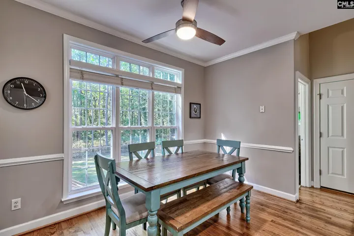 +"PublicRemarks": "From its timeless curb appeal to its remarkable outdoor living space, this classic traditional home captures the essence of comfort and elegance. A gracious front porch welcomes you inside, where oak hardwood floors, heavy molding, and abundant natural light create a sense of warmth and refinement throughout the main level. The heart of the home lies in its inviting layout, offering the perfect blend of defined spaces & open flow. To one side, the living room features a cozy fireplace, wiring for surround sound, and large windows. Across the foyer, the formal dining room showcases wainscoting and elegant trim work, ideal for hosting family dinners or holiday gatherings. The kitchen is beautifully updated with granite countertops, a tiled backsplash, stainless steel appliances including a gas range, and ceiling speakers. A spacious eat-in area provides serene views of the backyard, making everyday meals feel special. Step outside and experience one of the home’s most captivating features: a stunning 780-square-foot multi-level paver patio complete with a fire pit area. Overlooking a private, fully fenced yard that backs up to a protected nature preserve, the outdoor setting offers peace, beauty, and ample space for entertaining or play. A raised garden bed and wide grassy area complete the picture of backyard perfection. The expansive screened porch is an extension of the living space, large enough for gatherings yet quiet and private for morning coffee or evening relaxation. Upstairs, the primary suite impresses with a vaulted ceiling, walk-in closet, and a pristine en-suite bath featuring dual sinks, a soaking tub, separate shower, and water closet. Two additional bedrooms share a hall bath, bedroom 4 is a large FROG with its own half bath offering versatility as a guest suite, media room, or home office. Additional highlights include a true two-car garage with a utility sink, a full-size laundry room, and a cul-de-sac location near schools and shopping. Situated within the sought-after Lake Carolina community offering sidewalks, parks, playgrounds, and optional pool membership. This home combines character, comfort, and one of the most picturesque backyards. "