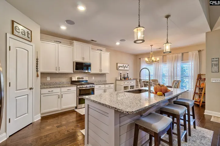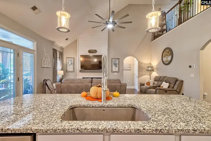 +"PublicRemarks": "Single Story living at its finest! Stunning 5BR/3BA 2719sf home with OWNER SUITE ON 1ST FLOOR in highly sought-after Shoals Landing GATED COMMUNITY in Irmo! With quick access to I-26, restaurants, shopping, and the beautiful Lake Murray and community dock access nearby, this home has it ALL! This beautiful home features an OPEN Floorplan Design with vaulted ceilings, hardwood floors throughout the first level, and a grand staircase that adds timeless charm. The spacious great room offers soaring ceilings, cozy LED fireplace, and is at the end of a long and gracious hallway that welcomes guests into your home properly. LARGE KITCHEN with STAINLESS STEEL APPLIANCES, ISLAND, GAS RANGE, PANTRY, and more! Relax or entertain outdoors on the huge oversized screened porch and enjoy the easy maintenance of a landscaped cozy backyard with privacy fencing and no houses directly behind you for peace and quiet. Additional highlights include tiled bathroom and laundry floors, a wide three car driveway with tons of additional parking spaces, and a Trane HVAC system with Clean Effects Unit Air Cleaner for superior comfort and air quality. The yard is beautifully landscaped with palm and palmetto trees, creating a peaceful and inviting setting. Schedule your showing TODAY! Disclaimer: CMLS has not reviewed and, therefore, does not endorse vendors who may appear in listings."