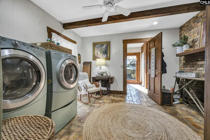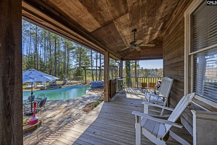 Set on 80 picturesque acres with 1,750 feet of frontage along Little River, plus two ponds and a creek, this remarkable estate offers the rare chance to own a piece of history- beautifully updated for modern living. The main home, originally built in the 1800s and reassembled here in 1985, exudes warmth and craftsmanship with cedar siding, heart pine walls and floors, and bricks thoughtfully reclaimed from the old Richtex brick mill next door. Ten fireplaces bring character and charm throughout the home, each one with its own story to tell. The main level features a spacious primary suite with a double-sided fireplace and a huge walk-in closet, along with a small additional bedroom currently serving as a laundry room. Upstairs, a cozy loft offers flexible living space. The lower level, renovated in 2022, includes three additional rooms used as bedrooms, two full bathrooms, and a large great room with a wet bar. French doors open onto a charming brick patio overlooking the property. Outside, the beauty continues with a gunite pool and waterfall, a detached two-car garage/workshop, and a wraparound porch perfect for slow mornings and sweeping views of the land. Approximately 20 acres surrounding the home are cleared, featuring a garden, fenced area for animals, and plenty of room for a pasture. The historic brick mill next door is also available for purchase-ask for more details and a video tour! Whether you dream of a homestead or a private retreat, this property offers endless possibilities, all just a short drive from Blythewood, the developing Scout Motors site, downtown Columbia, Lake Murray, and charming downtown Winnsboro. Disclaimer: CMLS has not reviewed and, therefore, does not endorse vendors who may appear in listings.