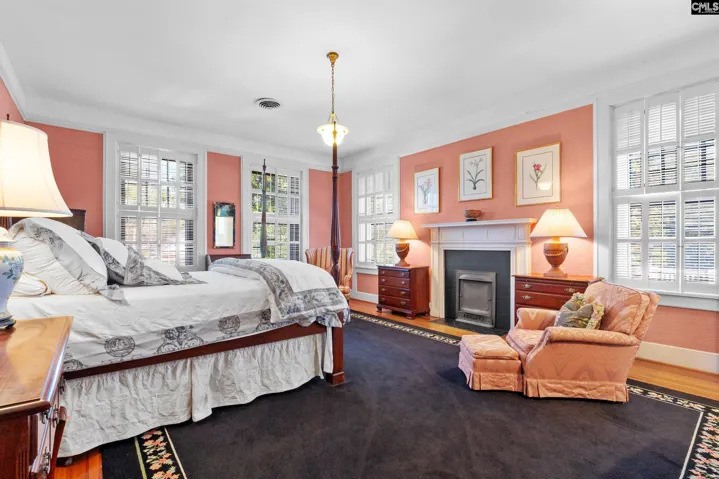 Introducing the historic John T. Stevens House, Circa 1918. This distinguished 5 bedroom, 3.5 bath, brick Colonial Revival, is located in the heart of Historic Kershaw, SC. Nestled on more than an acre, with an in-ground pool, detached garage and magnificent gardens. The house was originally built for prominent businessman John T. Stevens, but is also referred to as the ‘Dr. Blackwell House’, who has been the owner since the early 1970’s. Most of the signature design elements remain intact, including leaded glass features, elaborate plaster moldings, quarter-sawn oak floors with teakwood borders, a fireplace in almost every room, grand tuscan columns and porte-cochere. There is even the original central vacuum system installed in the early 1920’s! Inside, the main level showcases a grand foyer and sweeping staircase crowned by a crystal chandelier. Formal entertaining spaces include double parlors on each side of the entry, a large dining room, a cozy sitting room located just off the kitchen, and sunroom. The large eat-in kitchen has today’s modern conveniences including Thermador appliances, gas cooktop and double ovens, and separate pantry. The primary suite is on the main floor and includes the main sleeping room plus a 2nd bedroom room that is connected by a dressing room and bath in between. This room could serve as a nursery, office, or even a 6th bedroom. The split staircase leads to 4 generously sized bedrooms, each with a shared jack-and-jill style bath. Several of the rooms have access to the the upper outdoor balconies overlooking the land. The gardens, originally designed by a New York landscape firm responsible for several notable Charlotte estates, feature arbors heavy with muscadines, native plantings, and pathways that reflect the estate’s longstanding beauty. A pool, positioned within the footprint of the original formal gardens, remains on the property and offers an opportunity to be refinished. (Currently empty and needs a new liner and inspection.). With its rich provenance, preserved architectural details, and timeless gardens, the John T. Stevens House stands as one of Kershaw’s most important and cherished historic residences. Di