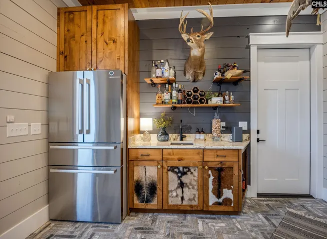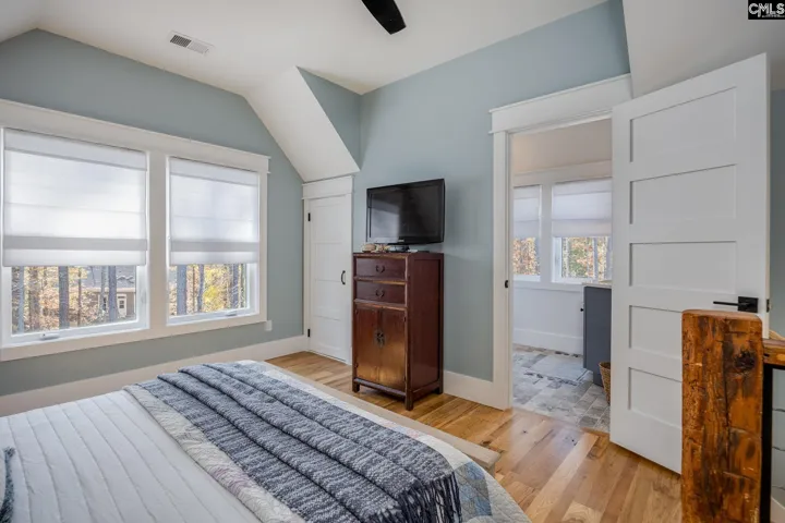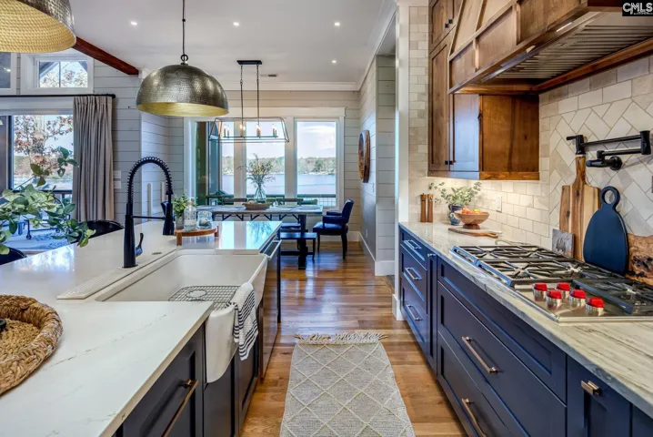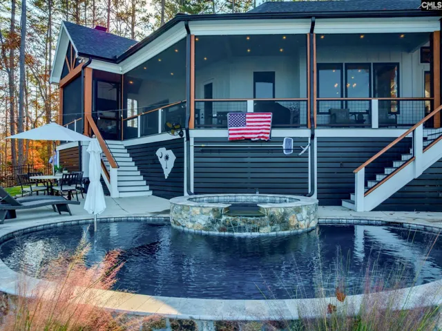Beautiful Custom-Built Modern Farmhouse (2023) on Lake Murray with 150 feet of water frontage, a private dock with boat lift, and a stunning in-ground gunite pool and hot tub. This 3,224 sq. ft. lakefront masterpiece includes 3 bedrooms, 3.5 bathrooms, a 3-car garage, and an additional portico. Inside, exquisite details include shiplap throughout, hardwood floors in all main living areas, bedrooms, and laundry room, with elegant tile in each full bathroom. The main level features over 9-foot ceilings and 8-foot doors, enhancing the home’s spacious, modern feel. The great room showcases vaulted ceilings, wood beams, a stone gas log propane fireplace, and impressive 15-foot bifold doors that open directly to the outdoor living areas, creating seamless lakefront views. A true culinary showpiece, the kitchen includes custom stained and painted cabinetry, quartz countertops, a tiled backsplash, pot-filler, built-in oven and microwave, built-in JennAir coffee maker, Wolf appliances, gas stovetop, built-in Sub-Zero fridge/freezer, a large island, and a walk-in pantry. The primary bedroom features vaulted ceilings, wood beams, and sliding glass doors that lead to the porch. The primary bathroom highlights a luxurious zero-entry wet room with freestanding soaking tub, walk-in shower, and dual vanities. Upstairs, the hallway includes two custom built-in bunk beds perfect for additional guest space. One upstairs bedroom includes an en-suite bath with walk-in closet and separate shower. The additional upstairs bedroom includes built-ins and access to a shared bath with dual vanities and a tub/shower combo. Step outside to an outdoor entertainment dream. A sprawling fixed and retractable screened porch features a stone fireplace (wood-burning or gas) and overlooks the custom gunite pool, hot tub, astroturf, and sweeping views of Lake Murray. One garage space includes a glass garage door that opens directly to the outdoor living areas, creating a versatile entertainment zone perfect for lake days. Designed for luxurious yet low-maintenance Lake Murray living, this home blends craftsmanship, style, and an unmatched waterfront setting. Disclaimer: CMLS has not reviewed and, t