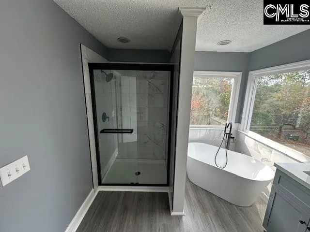 +"MasterBedroom": "Separate Shower,Closet-Walk in,Ceilings-Tray,Ceiling Fan,Separate Water Closet"