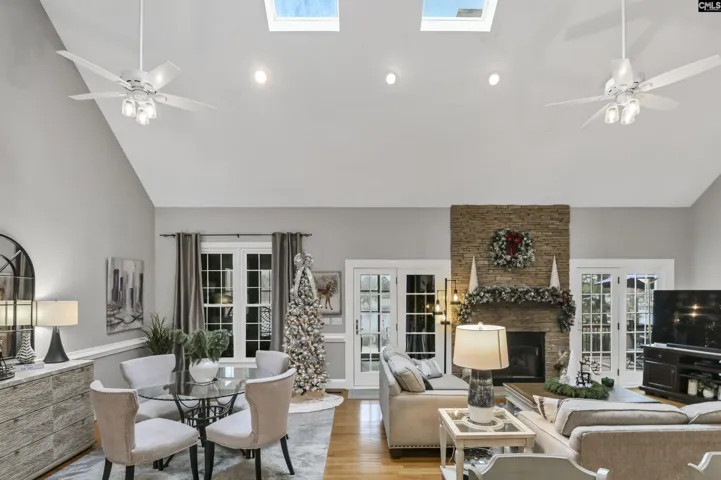 +"GreatRoom": "Fireplace,Floors-Hardwood,Molding,Skylight,Ceiling-Vaulted,Ceiling Fan,Recessed Lights"