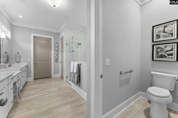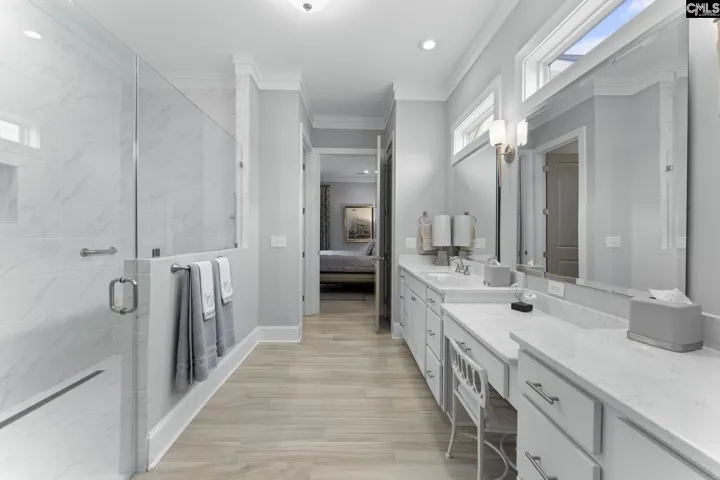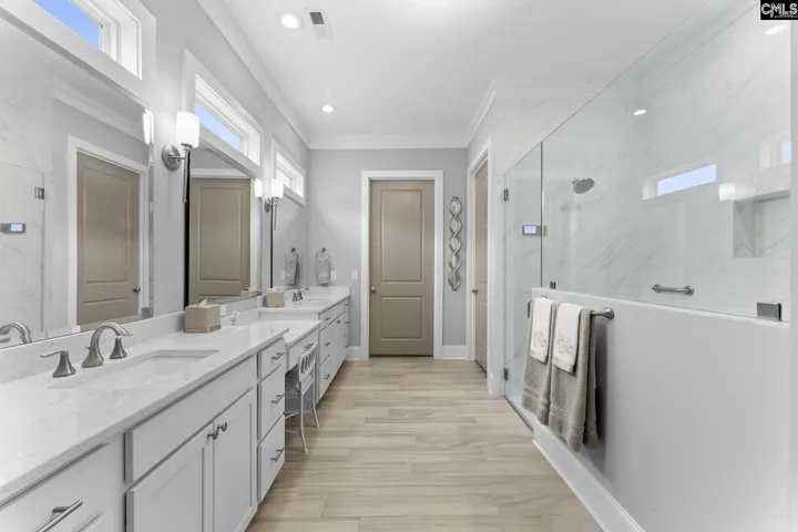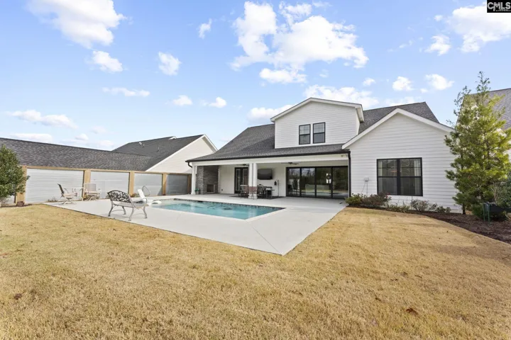 Live life permanently on vacation in this pristine home with a private pool in Saluda River Club. Featured in Columbia Metropolitan Magazine, this 3-bedroom, 3.5 bathroom home provides countless luxury comforts from high-end JennAir appliances, to motorized blinds. The 2-story foyer welcomes you with a stunning view of the staircase. The open living space features a gas fireplace, heavy crown molding, and seamless porcelain wood-grain flooring throughout the downstairs. A gourmet kitchen with built-in appliances, pull-out cabinet shelving, and a spacious walk-in pantry provide for all your cooking and hosting needs. The owner’s suite features recessed lighting, dual vanities, a luxury walk-in shower, his-and-her walk-in closets, and French doors to an outdoor covered fire place. The patio area has plenty of covered space for dining and relaxing by the heated salt water pool in the landscaped back yard which is fully enclosed with beautiful privacy fencing. A second bedroom suite on the first floor includes a full bathroom and walk-in closet. Upstairs, a small living space is flanked by two walk-in attic accesses that could be finished for additional square footage, and the third bedroom suite also includes a full bathroom and walk-in closet. The stamped driveway leads into a 2-car garage featuring epoxy floor coating and an EV charger, and the third garage provides space for a golf cart. Saluda River Club provides countless opportunities for community and fun for all ages from bunco and book clubs to walking trails and a gym, community gardens, paddling and recreation on the river, a beautiful clubhouse for larger gatherings, and playgrounds and summer camps for children. Disclaimer: CMLS has not reviewed and, therefore, does not endorse vendors who may appear in listings.
