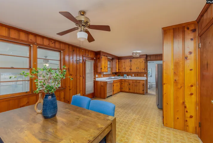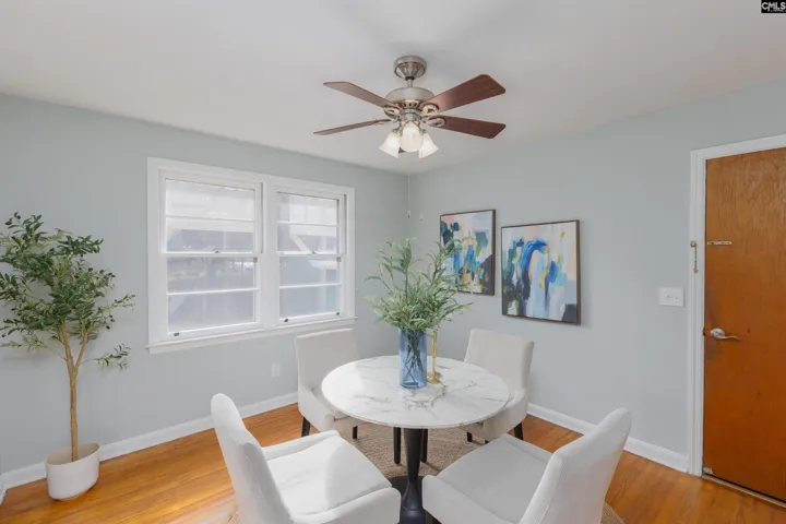 This beautifully maintained one-story brick ranch sits on a .33-acre corner lot with no HOA and showcases classic charm paired with thoughtful updates. With 1,972 square feet of living space, this home includes 4 bedrooms and 2 full bathrooms designed for comfort and everyday functionality.Step inside to a spacious living room filled with natural light and hardwood flooring that flows into the formal dining room—an inviting layout perfect for both daily living and gatherings. The kitchen features stained cabinetry and a generous eat-in area, creating a warm, practical space for meals. Just off the kitchen, a sunroom with a mini-split provides a versatile spot to relax year-round.The primary bedroom is generously sized and includes hardwood flooring and built-ins for added storage. The updated primary bathroom features tile flooring, a tiled walk-in shower, and a stained vanity. Two additional large bedrooms also feature hardwood flooring and share a newly renovated bathroom complete with stylish tile flooring, a tiled tub/shower combination, and a dual vanity. A large flexible room with a closet adds even more functionality and can serve as a fourth bedroom, playroom, or home office. Fresh paint throughout enhances the home’s clean, move-in-ready appeal.Outside, enjoy a fenced-in backyard with a detached carport area ideal for additional storage or covered parking. All appliances convey for added convenience. Conveniently located just 15 minutes from Downtown Columbia and less than 20 minutes from Main Street in Lexington, this home provides easy access to shopping, dining, and everyday essentials while maintaining a peaceful residential setting. Property Sold In AS IS Condition. Disclaimer: CMLS has not reviewed and, therefore, does not endorse vendors who may appear in listings.