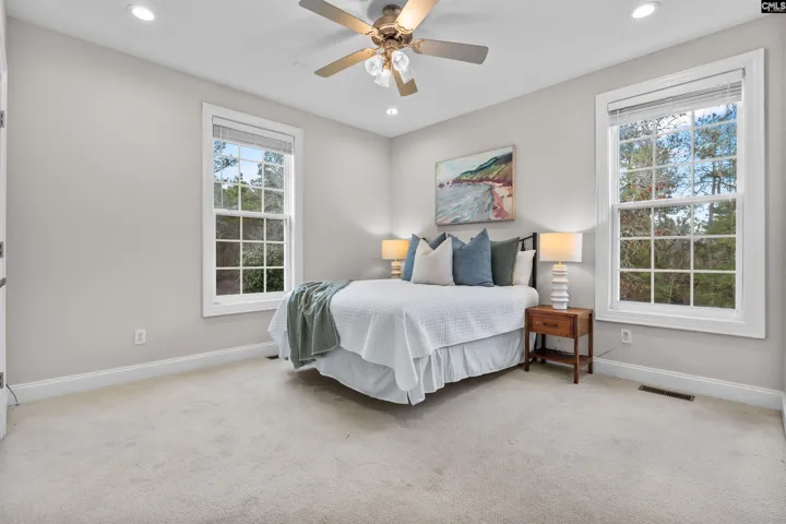 With a sense of arrival that goes beyond curb appeal, 124 Lewis Court makes a statement the moment you turn up the driveway. Known for its estate-sized lots and thoughtful guidelines that preserve long-term value, this one-road community offers a rare combination of privacy, pride of ownership, and enduring appeal. Set on two beautifully landscaped acres, this home blends timeless design with custom charm. HardyPlank siding, a charming country front porch, and a side-entry two-car garage upgrade the facade, while inside, large windows flood the home with natural light. Freshly refinished hardwood floors anchor the main living areas, and the kitchen is a true standout with gorgeous stained custom wood cabinetry, generous workspace, and views of the serene backyard. The primary suite is thoughtfully positioned on the main level with a private bath and walk-in closet, while two additional main-level bedrooms share a well-appointed hall bath. Upstairs, a spacious FROG with its own private bath offers flexible living options perfect for guests, a home office, or a media room, plus unfinished space ready for future expansion. Outdoor living shines here, with a large back deck overlooking incredible landscaping, mature foliage, and natural archways that create a truly special setting. A backyard shed adds function, and a whole-house generator provides peace of mind. Zoned for award-winning Lexington One schools including Gilbert Elementary, Gilbert Middle, and Gilbert High. This home delivers the rare combination of presence, privacy, and quality just minutes from everyday conveniences. Disclaimer: CMLS has not reviewed and, therefore, does not endorse vendors who may appear in listings.