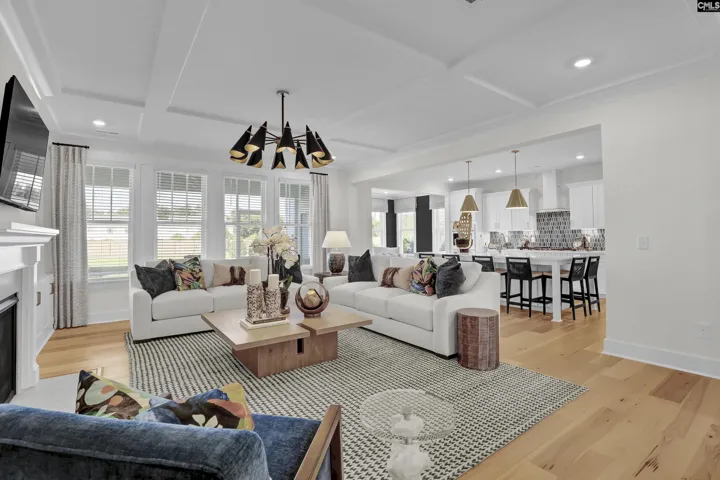 The Yates II is a spacious two-story home with five bedrooms and four and a half baths. The foyer opens to a home office and a formal dining room with a coffered ceiling, leading to a gourmet kitchen with a large island, built-in appliances, gas cooktop, and walk-in pantry. The family room includes a decorative ceiling and fireplace and pet pad, and a guest bedroom with full bath completes the main floor. Upstairs, three secondary bedrooms with walk-in closets share two full baths, along with a bonus room and laundry room. The primary suite features dual walk-in closets and a luxurious bath with a freestanding soaking tub, oversized shower, and dual vanities. Additional highlights include a sunroom, boxed wood stairs with metal spindles, and durable LVP flooring throughout main living areas. Outside, the expanded covered porch offers the perfect space to relax and enjoy your home. STOCK PHOTOS Disclaimer: CMLS has not reviewed and, therefore, does not endorse vendors who may appear in listings.