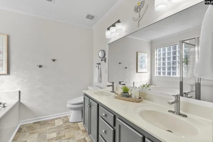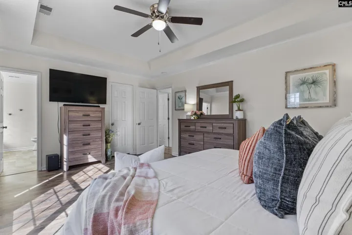 Tucked away on a quiet cul-de-sac, this beautifully maintained single-story home offers the ease of one-level living with thoughtful upgrades throughout. A welcoming covered front porch sets the tone, opening to a bright great room anchored by a cathedral ceiling and cozy gas log fireplace. The open kitchen and dining area flow seamlessly, featuring granite countertops, beadboard backsplash, under-cabinet lighting, stainless steel appliances, and upgraded lighting and ceiling fans. The primary suite is a true retreat with a tray ceiling, deep walk-in closet, double vanities, soaking tub, and separate shower. Situated on a generous 0.31-acre lot, the fully landscaped, level backyard is framed by mature trees and low-maintenance plantings. A double deck provides the ideal setting for entertaining, while the above-ground pool makes this backyard a true summer escape. All this zoned for award-winning Lexington/Richland District Five Schools. Disclaimer: CMLS has not reviewed and, therefore, does not endorse vendors who may appear in listings.