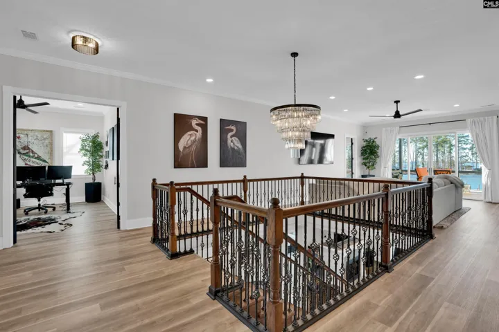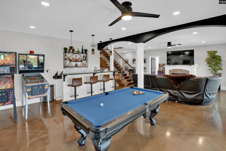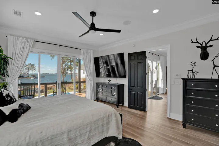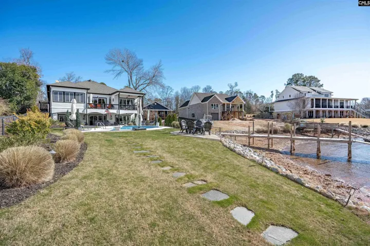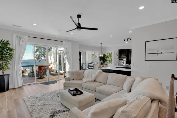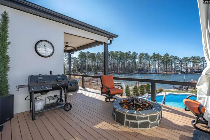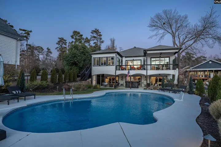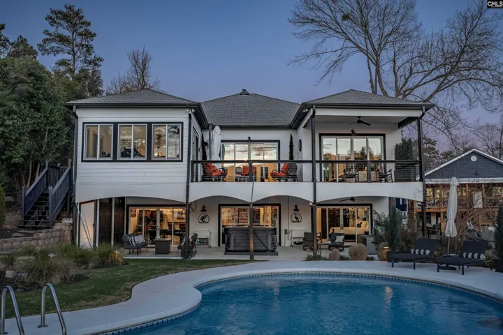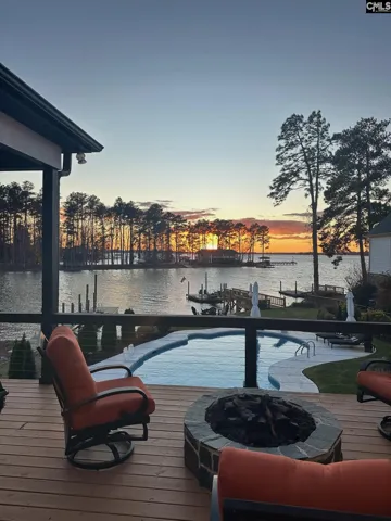 An ultimate- modern contemporary lakefront estate where every evening concludes with show-stopping sunsets over Lake Murray & a glistening, resort-style pool. This fully updated 5-bedroom, 4 bath retreat is perfectly positioned along 103 feet of pristine shoreline in sought after Lake Point; offering just under 4,700 square feet of thoughtfully designed living space. The open-concept main living area is framed by expansive windows that flood the home with natural light and capture breathtaking panoramic lake views from nearly every angle—creating an inviting atmosphere for both everyday living and entertaining. At the heart of the home is the ultimate chef’s kitchen, meticulously updated with every luxury component in mind, making it ideal for hosting family and guests alike. Adjacent to the kitchen, an enclosed porch provides a peaceful setting for morning coffee while overlooking the tranquil water. The main-level owner’s suite is a private sanctuary featuring sweeping lake scenery, direct access to a private terrace, and a spa-inspired bath complete with dual custom stone vanities, an oversized walk-in shower, oversized sauna and expansive his-and-her closets. The main level also includes a private office, a custom dog suite with its own shower/tub, and a magnificent dining room large enough to accommodate a Grand 12-person table—perfect for memorable gatherings.The lower level offers 4 massive guest bedrooms, 2 custom bathrooms, a gigantic great room; anchored by an elaborate bar and billiards area. Step out onto the lower terrace to soak in unforgettable sunsets; Sellers have perfectly placed a relaxing hot-tub for ultimate viewing. Outdoors, the backyard oasis features a deep swimming pool, expansive patio, epic fire-pit, custom dog run and a private dock with deck space, ideal for watercraft or simply enjoying the serenity of lakeside living. With miles of big-water views visible from the living room, great room, kitchen, owner’s suite, and every terrace; Lake Life is experienced at every glance… Designed for comfort, luxury, and entertainment, this exceptional property transforms daily living into a forever resort-like lake paradise. Disclaimer: