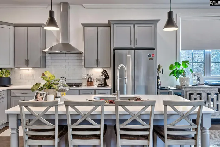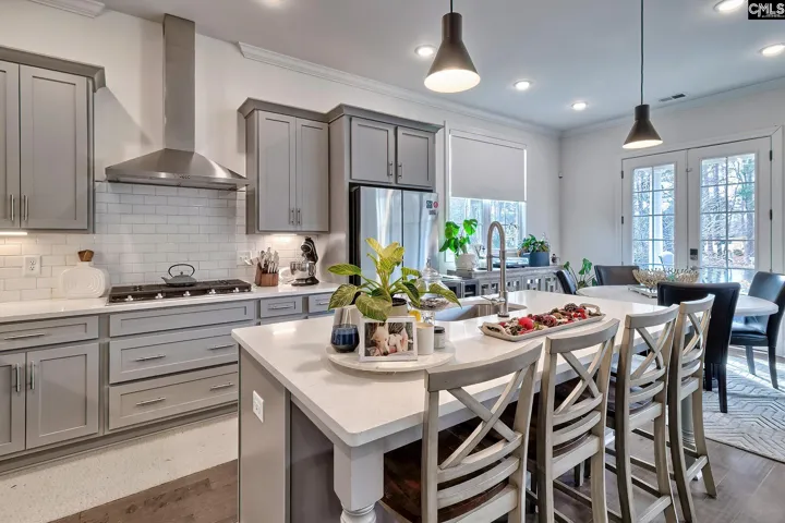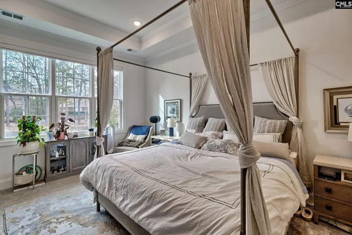 Situated on the peaceful shores of Coopers Lake, 12 Beaver Lake Court is a custom, all-brick home built in 2023 in one of the most sought-after neighborhoods outside Downtown Columbia, Woodcreek Farms. The open-concept main level showcases beautiful water views, with a welcoming entry that flows into a spacious family room with a fireplace and built-ins, open to the kitchen with plenty of counter and cabinet space, stainless steel appliances including a gas range, and an eat-in area overlooking the covered patio and lake. The owner’s suite is located on the main level and offers panoramic sunset lake views. Designed as a private retreat, it features two oversized walk-in closets, dual vanities, a vanity area, a large soaker tub, and a huge shower with dual rain shower heads. A second bedroom, also on the main level, includes a full bath and is ideal for guests or a home office. The main floor also includes a convenient powder room and a laundry room with built-ins, plus a storage closet near the entrance to the two-car garage. Upstairs, you’ll find a loft perfect for a second den, bedrooms 3 and 4 with generous closet space and a shared Jack-and-Jill bath, and a fifth bedroom with a full bath just down the hall. An additional flexible and private room upstairs offers versatility for a home office, playroom, or additional living area. Located in a section of Woodcreek Farms with only the primary association dues, this home offers both the benefits of a peaceful lakefront setting and low-maintenance living. Disclaimer: CMLS has not reviewed and, therefore, does not endorse vendors who may appear in listings.