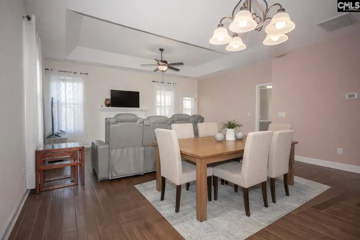 Beautiful Craftsman-style home in a desirable sidewalk community in Blythewood offering easy no-step entry and main-level living. This thoughtfully designed 1.5-story home features three bedrooms and two full baths on the main level, plus a private bonus room upstairs—ideal for a 4th bedroom, home office, or flex space—with attic access for additional storage.Hardwood floors flow throughout the foyer, formal dining room, kitchen, great room, owner’s suite, a secondary bedroom, and the staircase. The open kitchen includes stained cabinetry, granite countertops, stainless steel appliances, bar seating, recessed lighting, and a large pantry. The spacious great room features high ceilings, a ceiling fan, and a gas log fireplace.The owner’s suite offers a tray ceiling, ceiling fan, large walk-in closet, and a private bath with double vanities, granite countertops, garden tub, and separate shower. Secondary bedrooms are well separated for privacy and include generous closets.Additional highlights include a tankless hot water heater, security system, and a fully fenced backyard with custom shed. Neighborhood amenities include a community pool, playground, cabana with covered seating and restrooms, green spaces, and sidewalks throughout. Conveniently located near top schools, shopping, dining ,golf, and tennis. Schedule your private showing today. Disclaimer: CMLS has not reviewed and, therefore, does not endorse vendors who may appear in listings.