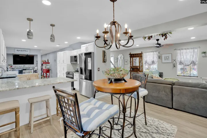 Welcome to this beautifully maintained and thoughtfully updated 4-bedroom, 2.5-bath home with comfortable living space on a ¼-acre lot. From the moment you arrive, the large front porch with a swing sets the tone for relaxed living and timeless charm. Inside, you’ll love the high vaulted ceilings, recessed lighting in every room, and a layout designed for both everyday living and entertaining. The first floor is outfitted with elegant tile flooring, while luxury vinyl plank flooring extends across the entire upstairs area. The home offers two separate living areas, providing flexibility for a family room, media space, or home office. All the guest bedrooms are spacious and well-situated around an updated full bathroom. The owner’s suite is roomy as well and has an updated full bathroom with spacious walk-in closet. The galley-style kitchen is both functional and stylish, featuring ample storage, gorgeous granite/marble countertops, and updated finishes that make it a joy to cook and gather. Thoughtful and tasteful remodels can be found throughout the home, reflecting true pride of ownership.Major updates include a newer roof and zoned HVAC system along with a brand-new water heater, offering peace of mind for years to come. As a bonus, there is plenty of storage space in the attached, 2 car garage which boasts a functional sink, dishwasher, and stove! Step outside to enjoy the covered back patio, ideal for relaxing or entertaining, and two storage sheds—an 11×17 shed and a 10×12 shed—perfect for tools, hobbies, or additional storage. This home is zoned for award-winning Lexington-Richland School District Five and is conveniently located near shopping, dining, and everyday amenities. With easy access to Interstate 26, commuting and traveling throughout the Midlands is simple and efficient. This move-in-ready home blends space, quality updates, and an unbeatable location—truly must-see. Schedule your tour today! BACK ON THE MARKET AT NO FAULT OF THE SELLER, BUYER FINANCING. Disclaimer: CMLS has not reviewed and, therefore, does not endorse vendors who may appear in listings.