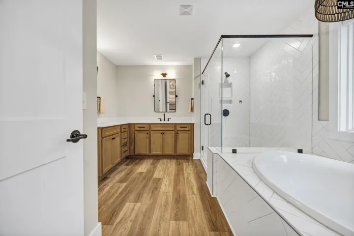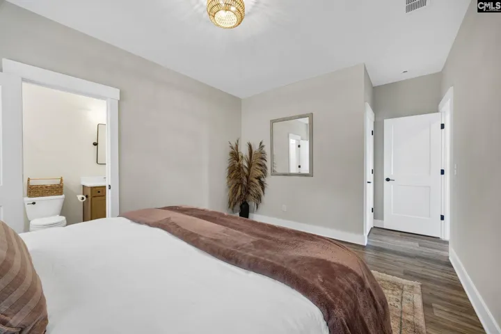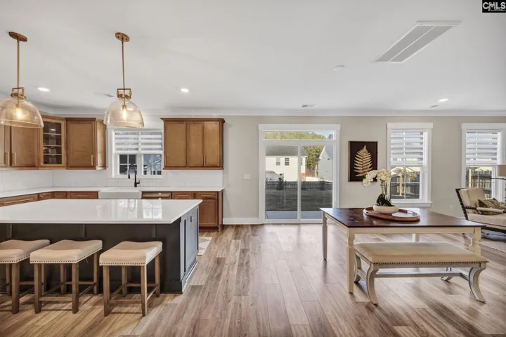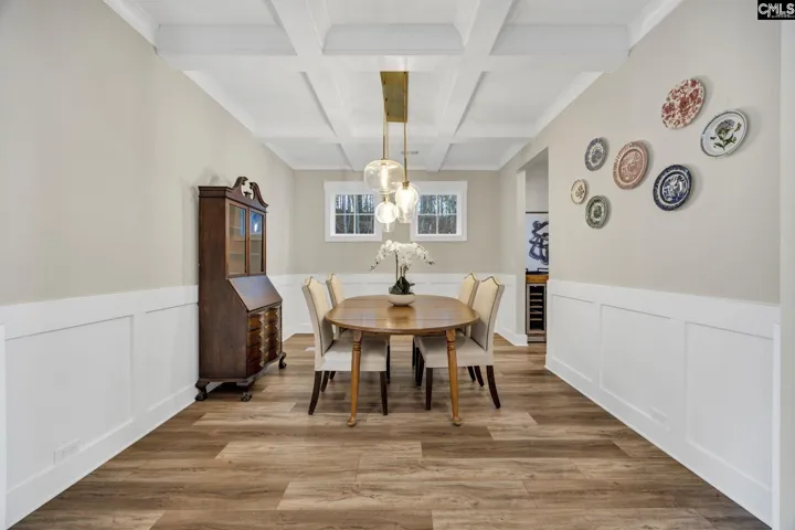 Situated at the end of a quiet street, this thoughtfully designed home offers a setting that feels calm, private, and intentionally removed. From the moment you arrive, the home feels curated and personal, with spaces designed for both everyday comfort and effortless entertaining. Inside, the main living areas unfold gracefully. A gourmet kitchen anchors the space, centered around an eat-in island finished with Calacatta Gold quartz countertops, creating a natural gathering place for family and friends. A refined wine bar with a wine refrigerator connects the kitchen and dining room, along with a spacious walk-in pantry that blends beauty with function. The dining room is finished with coffered ceilings and custom lighting, creating an elevated setting where meals feel intentional and gatherings linger. The layout is both flexible and thoughtful, offering five bedrooms and three and a half baths. On the main level, a guest bedroom with an ensuite bath provides comfort and privacy, while a dedicated home office with French doors offers a quiet and refined workspace. Upstairs, a large second living area serves as an expansive loft, ideal for a media room, secondary lounge, or relaxed gathering space. The additional bedrooms are well proportioned, allowing the home to feel open and balanced while still offering separation and privacy. Outdoor living has been equally well considered. The fully fenced backyard offers a peaceful retreat, featuring a large private patio ideal for seating or gatherings. Surrounded by cherry blossom trees and cypress plantings, the outdoor space feels serene, inviting, and private, creating a natural extension of the home. Located within the Lexington One School District, directly across the street from River Bluff High School, and offering convenient access to I-26, this home provides easy connectivity to Downtown Columbia, Downtown Lexington, and Lake Murray. Disclaimer: CMLS has not reviewed and, therefore, does not endorse vendors who may appear in listings. Disclaimer: CMLS has not reviewed and, therefore, does not endorse vendors who may appear in listings.