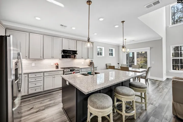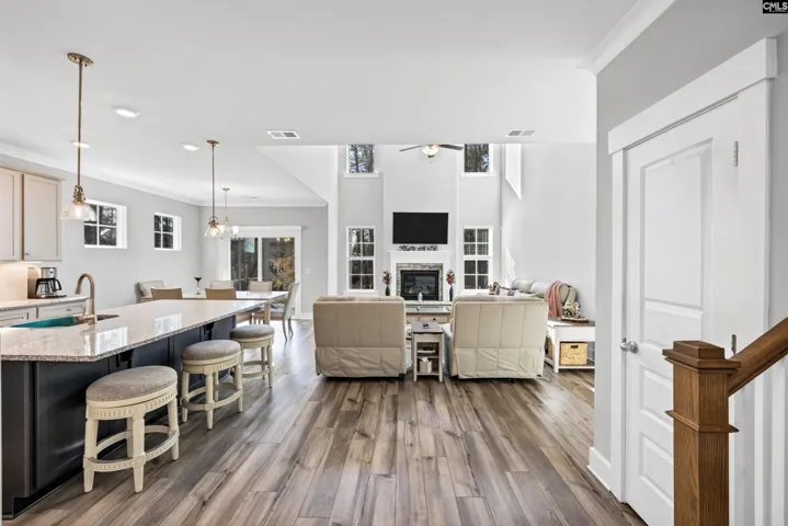 Welcome to this beautifully designed 2024-built home in the highly desirable Autumn Pond community. Meticulously cared for, this waterfront property offers modern comfort, over $20k in upgrades, & peaceful water views from multiple rooms in the home. Step inside to discover tall ceilings, an abundance of natural light, & upgraded flooring throughout the entire home. The open-concept living area flows seamlessly into a stunning gourmet kitchen featuring brand new, upgraded stainless steel appliances including a gas range & oven. You’ll be cooking with clarity thanks to the upgraded lighting, a spacious granite island with an eat-in dining room perfect for gathering & entertaining. The primary suite is conveniently located on the main level, offering a relaxing retreat with beautiful views & a spa-inspired bathroom. You’ll also find an additional flex room on the main level ideal for a home office, playroom, or formal dining room. Upstairs, you’ll find a common area open to the living area downstairs, three additional guest bedrooms & a full, dual vanity guest bathroom beautifully equipped to handle any additional family needs. Step through the sliding glass door and your favorite spot in the house may quickly become the screened-in back porch, where you can enjoy quiet mornings or unwind in the evening while overlooking the lake. Special & Notable: $20k in upgrades: Upgraded flooring, high-end gas range, voice-activated & vented modern range hood, under-cabinet lighting, upgraded pendant lighting over kitchen island, smart thermostat for optimized energy consumption, upgraded security system with smart cameras & flood lights, screened-in back porch with lake views, craftsman style exterior, beautiful curb appeal, small fully developed neighborhood. Prime Location: 20 mins to Ft Jackson; 10-15 mins to Blythewood, Scout Motors and local shopping; Close proximity to award-winning golf including Columbia Country Club & Windemere Club; Easy access to I-77, restaurants, groceries & schools. This home has the perfect blend of convenience, comfort & style. Schedule you private tour today & experience the exceptional lifestyle 222 Falling Leaves Ln can provide. Disclaimer
