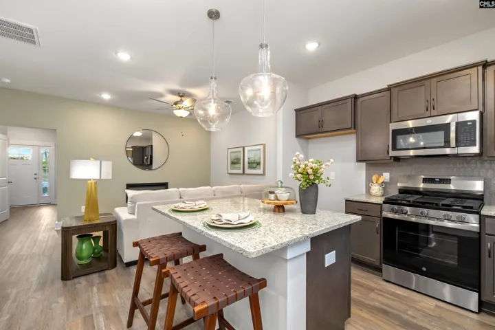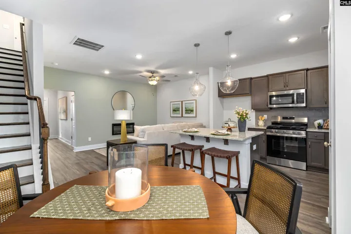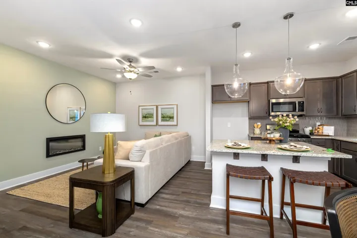 Welcome to Deer Park Luxury Townhomes in Exclusive Woodcreek Farms! Experience upscale living in the heart of the highly sought-after Woodcreek Farms Subdivision. These elegant townhomes showcase contemporary white brick veneer, board and batten and fiber cement-hardy plank exterior with striking black trim, delivering modern curb appeal and timeless style. Step inside to discover nine-foot ceilings that enhance the open, airy feel throughout the main level. Enjoy luxury vinyl-plank flooring in the foyer, great room, and kitchen, paired with ceramic tile flooring in all bathrooms and the laundry room for both durability and refined design. The open-concept layout seamlessly connects the great room, dining area, and kitchen—perfect for entertaining or everyday living. Comes with a gas stove/oven. The great room is highlighted by a stunning 40-inch linear electric fireplace, adding warmth, ambiance, and a sleek modern focal point. The kitchen features a subway tile backsplash, contemporary finishes, and generous counter space. With three bedrooms and two-and-a-half bathrooms, this 1,362-square-foot townhome offers comfortable living for families, guests, or a home office. The heatless gas water heater ensures enhanced energy efficiency and convenience. Outside, enjoy easy, low-maintenance living with irrigation included for all landscaping. Each home also includes a one-car garage for storage and functionality. The Midland’s very first builder to provide an extended 2 year warranty on craftsmanship. Don’t miss the opportunity to own a beautifully crafted, modern luxury townhome in one of the Midlands’ premier communities—Deer Park at Woodcreek Farms. Disclaimer: CMLS has not reviewed and, therefore, does not endorse vendors who may appear in listings.