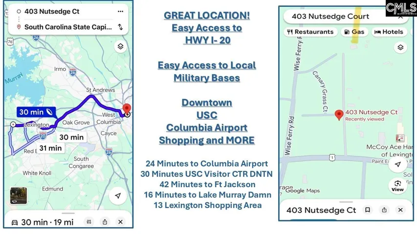 Come see this in person! Low-maintenance living meets custom designer style at 403 Nutsedge Ct in Lexington. This 3-bedroom end-unit townhome offers extra parking, additional yard space, and enhanced privacy rarely found in similar homes. Ideally located near award-winning schools, shopping, and convenient access to I-20, the property blends comfort with everyday convenience. Inside, the open floor plan features a spacious center-island kitchen with abundant cabinet and counter space, plus a dedicated coffee bar. Designer finishes and custom accent walls add character well beyond typical builder-grade construction. The Chef’s Kitchen is open to a spacious great room with a gas fireplace insert that is flanked by designer accent walls, giving a fashionable look to enjoy! Upstairs, all three bedrooms are thoughtfully arranged, including a spa-inspired primary suite with a walk-in closet, two additional closets, and a tall boxed ceiling. The secondary bedrooms share a beautifully detailed full bath. Enjoy outdoor living on the expanded patio overlooking a larger yard—perfect for grilling and entertaining. A one-car garage and additional parking at the end of the street complete this move-in-ready home. Disclaimer: CMLS has not reviewed and, therefore, does not endorse vendors who may appear in listings.