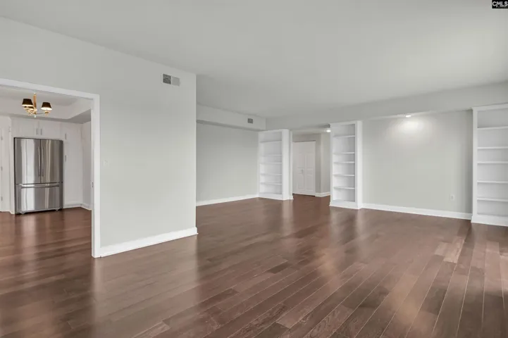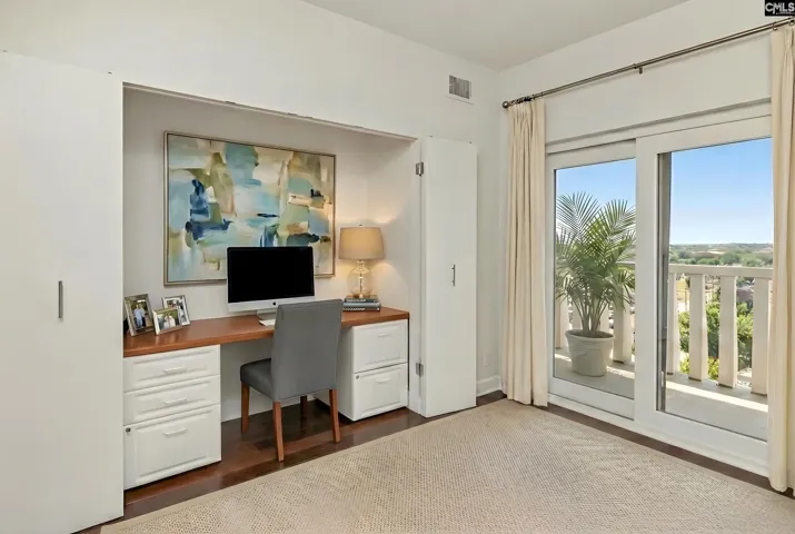 This beautifully renovated, 11th floor condo is located in The Heritage, Columbia’s premier condominium building. In recent weeks, new Brazilian Chestnut engineered flooring has been installed throughout the unit, and the interior has been painted. When the condo was renovated several years ago, a wall was opened up in the living area leading to the bedrooms. This unique architectural touch creates a more convenient flow to the space and additional natural light. All of the bedrooms and the living areas have access to the wraparound balcony that offers beautiful views of downtown Columbia, the University Hill area, and more. When fireworks are launched from downtown Columbia on New Year’s Eve or from SEGRA Park on the 4th of July, the views from the balcony are spectacular! Located on the northeast corner of the building, the unit gets morning sun. The living and dining areas are generous and open to each other. The kitchen has solid surface counters, tile backsplash, beautiful cabinets, great lighting, and a walk-in pantry. The master bedroom has a big, private bath with an extra large walk-in shower and his-and-her closets with built-ins. The third bedroom is currently used as a den and has very nice bookshelves and a built-in desk hidden behind folding doors. This unit comes with two reserved parking spaces in the attached, secure garage. The Heritage offers incredible amenities such as 24-hour security, very fine spaces for social gatherings large and small, swimming pool and outdoor cooking area, very nice exercise rooms and equipment, limited wine and spirits storage, and much more, including internet service in every unit that’s included in the HOA fee. The Heritage is less than two blocks from the University of South Carolina’s main campus and very close to the State Capitol, Vista, and Five Points. The interior pictures of this condominium include virtual furnishings. Disclaimer: CMLS has not reviewed and, therefore, does not endorse vendors who may appear in listings.