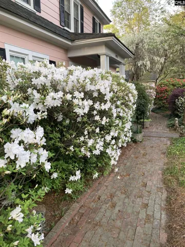 Location may be everything but on Brevard Place, it’s also timeless. Situated on one of Camden’s most desirable streets in the Historic District, this beautifully maintained corner-lot residence blends preserved character with. Towering trees frame the property, creating a serene setting just steps from downtown shops, dining, and the cultural landmarks that define Camden’s Southern heritage. The landscaped grounds feel intentional and curated, with azaleas, camellias, tea olives, anise, and natural stone pathways weaving throughout the gardens. Multiple access points from the home create a seamless indoor-outdoor connection, making the private rear patio an effortless extension of the living space: ideal for morning coffee, quiet evenings, or entertaining. The original Dutch front door with period hardware sets the tone upon entry. Inside, a welcoming foyer anchored by an antique chandelier introduces a thoughtfully flowing layout. Two bedrooms sit to the right (one currently styled as a den or flex space), while to the left, refined living, sitting, and dining areas embody both everyday comfort and elegant entertaining potential. The butler’s pantry, formerly the home’s original kitchen, preserves a meaningful architectural detail from its past. A striking stained-glass window sourced from Texas enhances the added sitting room, casting warm, colorful light into the adjacent dining space. The spacious rear kitchen provides easy access to the gardens and additional parking along Mill Street. Upstairs, two additional bedrooms, a full bath, and generous storage complete the home’s versatile floor plan. Distinctive features such as custom Charleston iron gates, glass and brass doorknobs, and tiger’s eye maple countertops reflect the home’s unique craftsmanship and curated updates. Exterior features a blend of brick, Hardie plank, and beautiful cypress accents. For the buyer who appreciates historic architecture, this home offers the best of both worlds, authentic period detail today, with the potential to elevate it into a refined modern retreat tomorrow. Disclaimer: CMLS has not reviewed and, therefore, does not endorse vendors who may appear in listings. Disclaim