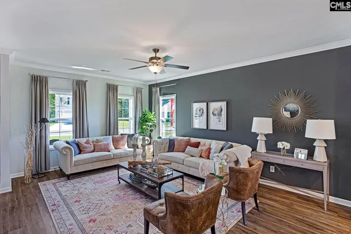 Save up to $8,500 in closing costs when you finance with our partner lender and enjoy resort-style living with incredible community amenities including a cabana, pool with wading area, and a relaxing lazy river — perfect for cooling off during those warm summer days. The McDowell is a spacious five-bedroom, three-bathroom home thoughtfully designed for comfort and flexibility, featuring a guest suite on the main level. A welcoming front porch leads into an open-concept layout highlighted by Driftwood luxury vinyl plank flooring throughout the entire first floor and a cozy gas fireplace anchoring the great room. The kitchen is both stylish and functional, showcasing a gas cooktop, Birch Flagstone cabinetry, and elegant Miami Vena quartz countertops. Just off the living area, an extended rear patio offers the perfect space for entertaining or relaxing while enjoying peaceful views of the wetland-protected area behind the home.A private guest suite with a full bathroom completes the main level, ideal for visitors or multi-generational living. Upstairs, beautiful hardwood staircase treads lead to three secondary bedrooms that share a bathroom with dual sinks. A spacious loft connects the bedrooms and provides additional living or entertainment space, while the laundry room includes cabinets for extra storage.The primary suite is a true retreat, featuring a vaulted ceiling, large walk-in closet, dual vanities, and a generously sized tiled shower with bench seating. Come discover comfort, space, and thoughtful design — and make the McDowell yours at Ellington! Disclaimer: CMLS has not reviewed and, therefore, does not endorse vendors who may appear in listings.