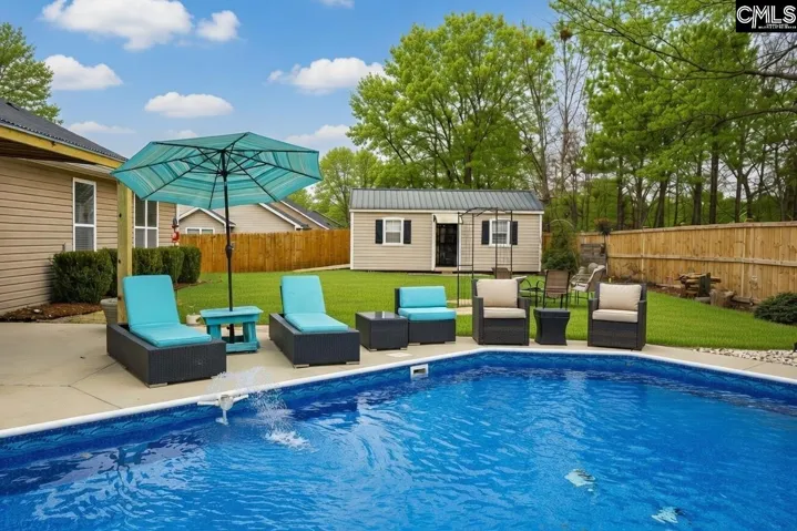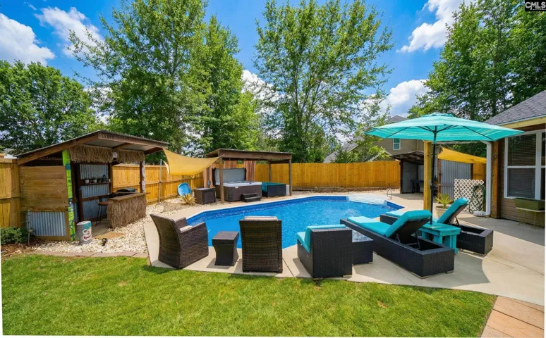 Welcome to 15 Audubon in desirable Quail Creek Subdivision in Lugoff. There are low Kershaw county taxes. No HOA. Property eligible for rural housing financing. Home has 3 bedrooms on main floor (including owner suite) and 1 bedroom upstairs(FROG with closet). All bedrooms have ceiling fans and walk-in closets. Backyard paradise features a 18 x 36 salt water vinyl pool (with Dolphin Robot Vacuum) and hot tub. Owner installed new liner, added privacy fence and replaced pool pump in last three years. Backyard is ideal for entertaining with tiki hut, firepit and pergola All outdoor furniture remains for buyers. There is a 12 x 14 storage building with electricity. This meticulous home has an open floor plan, new carpet and lots of granite/quartz. Renovated kitchen has stainless LG appliances (less than 4 years old), iisland with breakfast bar, roll -out shelves and walk-in pantry. Kitchen refrigerator conveys. There is easy access to I 20, Fort Jackson and Shaw Air Force Base. Home is located minutes away from schools, shopping, and restaurants. Disclaimer: CMLS has not reviewed and, therefore, does not endorse vendors who may appear in listings.