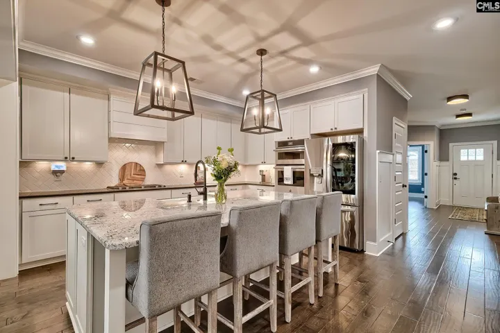 Stunning all-brick home in Saluda River Club! This three bedroom Woodlands District home features an open floor plan, high ceilings, and beautiful finishes throughout. The main living area has natural light pouring through the home and its open floor plan allows plenty of room for family and guests to gather. The kitchen boasts a large island and eat in area, stainless steel appliances, and tons of cabinet space, and flows effortlessly in the living room, complete with built ins and a gas fireplace. The spacious primary retreat includes a spa like bathroom complete with double vanities, a tiled shower, soaking tub, and walk in closet. The front room of the house boasts high vaulted ceilings and can be used as a home office, playroom or more. Upstairs you’ll find two additional bedrooms, a shared bathroom, and a loft. In addition to the living space, the upstairs features two spacious walk-in attic storage areas. The backyard features privacy walls (perfect to contain kids and pets) and a covered porch. Enjoy low-maintenance living with the front yard being maintained by the community (including front yard irrigation). This home is located in the award-winning Saluda River Club and includes amenities such as two clubhouses, two pools, a fitness center, walking trails and access to the Saluda River! Disclaimer: CMLS has not reviewed and, therefore, does not endorse vendors who may appear in listings.