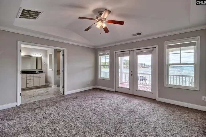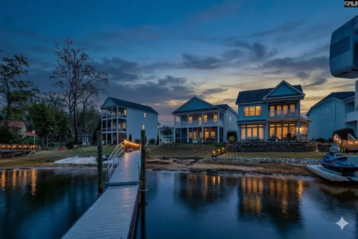 Lake Murray Waterfront Living w Private Boat Lift & Stunning Sunset Views! Experience effortless lake living in this move-in-ready waterfront retreat.Built in 2018 & meticulously maintained by its original owner, this home offers beautiful water views & thoughtful updates throughout.Enjoy approx. 62 ft of shoreline w direct access to 50,000 acres of Lake Murray just steps from your back door-perfect for boating, fishing, paddleboarding, or relaxing at sunset.A shared dock w a private boat lift (added 2019) makes getting on the water quick & easy.Outdoor living is just as inviting w a spacious screened porch overlooking the lake & a private balcony off the primary suite, both featuring ceiling fans & waterfront views.Inside, the bright open floor plan showcases high ceilings, hardwood floors, & a gas-log fireplace.The kitchen is designed for everyday living & entertaining w granite countertops, tile backsplash, oversized island, gas range & stainless appliances, including a new refrigerator, microwave & disposal. Kitchen sink sits beneath a window overlooking Lake Murray, bringing scenic views into the heart of the home.The dining area flows seamlessly into the main living space. A flexible main-level room w French doors & a closet can serve as a guest bedroom, office, or additional living space w convenient access to a full bath. Upstairs, the primary suite offers lake views & private balcony access w double doors leading into the ensuite bath featuring a soaking tub, separate shower, dual vanities, a walk-in closet & second closet.Three additional bedrooms, a full bath & a recreation area complete the upper level.Recent improvements include a new tankless water heater & 10-yr termite bond.The exterior has been power washed, windows professionally cleaned & the garage is immaculate.Amenities include a lakeside cabana, fire pit, beach area, community dock, and boat ramp. Lex 1 schools: Conveniently located under 2 miles to Rocky Creek Elementary & Beechwood Middle & 3.5 miles to Lexington High.Move-in-ready Lake Murray waterfront homes w boat access are rare!*Ask about possible 2K in lender credit. Disclaimer:CMLS has not reviewed and, therefore, does not endorse