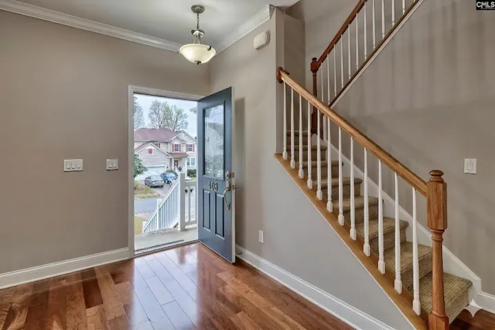 Located in Settlers Pointe at Lake Murray with private neighborhood boat access, 408 Settlers Trail in Lexington sits on a private lot near a cul-de-sac. The entry opens to a flexible dining room and sitting area, then leads to a spacious family room with a gas fireplace. The oversized kitchen offers ample counter and cabinet space, a true pantry, tile backsplash, and an eat-in area with easy access to the porch. A main-level guest suite has access to a full bath. Fresh paint throughout and upgraded hardwoods and tile add to the appeal of the main level. Upstairs, a large loft provides an additional gathering space that is perfect for a second family room, theater, or play area. The owner’s suite is tucked at the back of the home, offers room for large furniture, and features a private bath and a large walk-in closet with custom shelving. Bedrooms 3 and 4 share a full hall bath. The laundry room is located on the second floor. The second floor was recently painted and features upgraded carpet and pad. The home offers plenty of space for entertaining, along with separate living areas that allow for added privacy. Award-winning Lexington One schools include New Providence Elementary (1.8 miles), Lakeside Middle (0.7 miles), and River Bluff High (4.8 miles). *Ask about possible 2K in lender credit. Disclaimer: CMLS has not reviewed and, therefore, does not endorse vendors who may appear in listings.