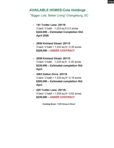 The Maple floorplan in the established area of Orangeburg. Positioned on a spacious .35-acre homesite, this newly built home features 1,233 square feet of well-designed living space with three bedrooms and two full baths. Move-in ready and competitively priced. Nothing additional needed — simply bring your furniture and settle right in. Features include 9’ ceilings, upgraded lighting, modern finishes, stone accents, plus stainless steel refrigerator, washer, and dryer included. The open layout offers comfortable living and practical functionality throughout. Home anticipated for completion mid April. Photos are stock images with virtual staging. Disclaimer: CMLS has not reviewed and, therefore, does not endorse vendors who may appear in listings.