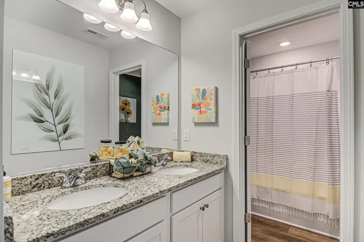 This two-story Meriwether has three bedrooms and two and a half bathrooms. Just off the entry you’ll have a guest room with a full bathroom. An open kitchen with gorgeous Birch Flagstone cabinetry with crown molding, tile backsplash, and features a Miami Vena quartz island with pendant lighting above, stainless appliances with gas range and eating area and leads into the spacious and open great room with ceiling fan. Upstairs, the spacious primary bedroom suite has direct access to the laundry room, large closet and bathroom which has a beautifully tiled 5′ shower with bench seating, a water closet, dual vanities, and a linen closet. An open loft area is an added benefit to the home with so much ability to create a space of your own! We’ve added a covered patio with ceiling fan, the perfect spot for relaxing or entertaining. A fully sodded yard with sprinkler system, full gutters, fully fenced, also included with this home facing a wetland protected area. Come see the model home Meriwether in Ellington and see how great this floorplan is and make it yours today! Disclaimer: CMLS has not reviewed and, therefore, does not endorse vendors who may appear in listings.